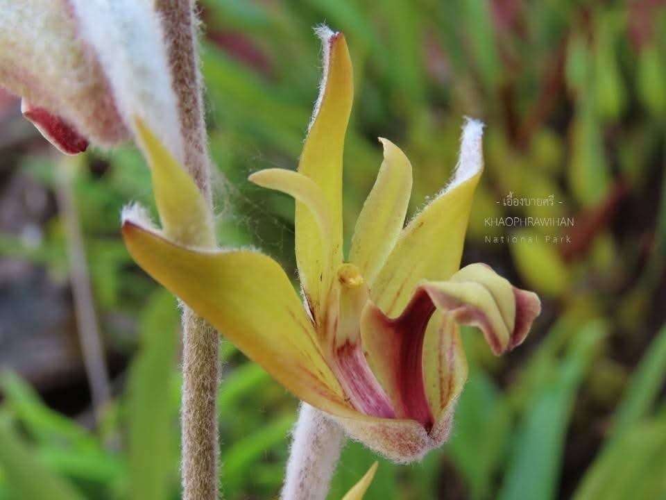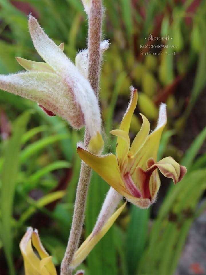 กล้วยไม้ชนิดนี้เป็นพืชอิงอาศัยที่สามารถทนต่อสภาพแห้งแล้งได้ดี ลำลูกกล้วยมีลักษณะรูปรี ห่อหุ้มด้วยกาบใบ ใบรูปขอบขนาน ขนาดกะทัดรัด ปลายใบมนถึงแหลม ช่อดอกออกบริเวณโคนลำ ตั้งตรงและมีขนปกคลุมอย่างเด่นชัด