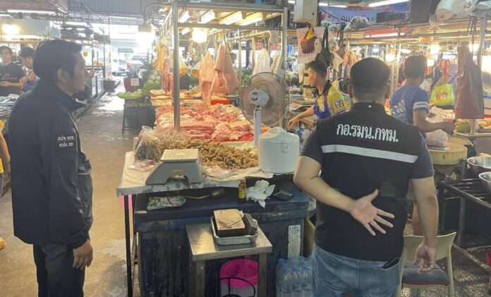 วันที่ 5 มีนาคม 2569 กองอำนวยการรักษาความมั่นคงภายในกรุงเทพมหานคร (กอ.รมน.กทม.) สนธิกำลังร่วมกับเจ้าหน้าที่ตำรวจ สน.นิมิตรใหม่ และเจ้าหน้าที่ สปข.ขกท.ศปก.ทบ. ลงพื้นที่ตรวจสอบตลาดหทัยมิตร แขวงบางชัน เขตคลองสามวา หลังได้รับแจ้งเบาะแสจากประชาชนผ่านสายด่วน 1374 ว่ามีแรงงานต่างด้าวลักลอบเปิดร้านจำหน่ายเนื้อหมูภายในตลาด