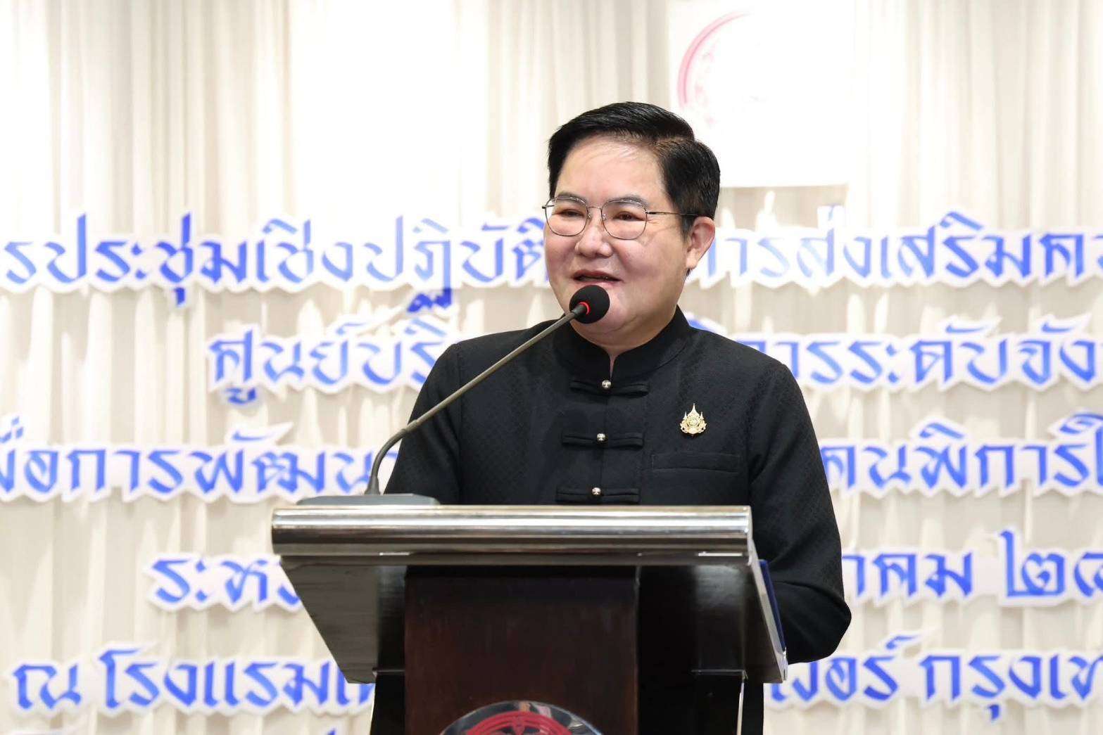 นายอัครา กล่าวเพิ่มเติมว่า การประชุมเชิงปฏิบัติการครั้งนี้ นับเป็นครั้งแรกของพัฒนาสังคมและความมั่นคงของมนุษย์จังหวัด (พมจ.) ในฐานะผู้อำนวยการศูนย์บริการคนพิการระดับจังหวัด ซึ่งเป็นเวทีในการส่งเสริมการขับเคลื่อนงานตามภารกิจของศูนย์บริการคนพิการระดับจังหวัดทั่วประเทศ และการมอบนโยบายทิศทางการขับเคลื่อนศูนย์ฯ รวมทั้งการเสริมสร้างความเข้มแข็งของภาคีเครือข่ายในการบูรณาการการทำงานร่วมกันในระดับพื้นที่ เพื่อให้เกิดการขับเคลื่อนนโยบาย “พม.ใกล้คุณ” ลดรายจ่าย สร้างรายได้ รีสตาร์ทชีวิต ไปสู่การพัฒนาคุณภาพชีวิตคนพิการกว่า 2.2 ล้านคนทั่วประเทศ โดยยึดประโยชน์สูงสุดของคนพิการเป็นสำคัญ