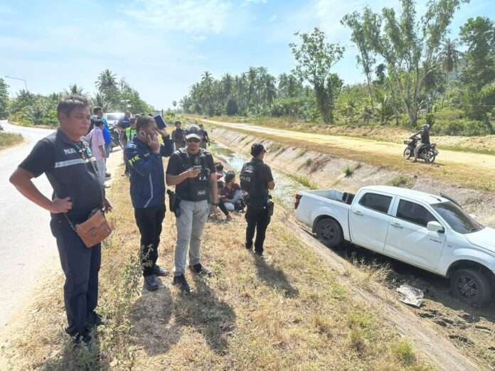 ปัตตานี – ตำรวจ สภ.หนองจิก จ.ปัตตานี รวบแรงงานต่างด้าวสัญชาติเมียนมาร์ 14 คน หลังรถกระบะที่ใช้ลำเลียงประสบอุบัติเหตุตกข้างทางริมถนนชลประทาน ขณะที่คนขับอาศัยจังหวะชุลมุนหลบหนีไปได้ เร่งติดตามตัวดำเนินคดี เหตุการณ์เกิดขึ้นเมื่อวันที่ 5 มีนาคม 2569 บริเวณริมถนนชลประทาน หมู่ 7 ตำบลบ่อทอง อำเภอหนองจิก จังหวัดปัตตานี หลังเจ้าหน้าที่ได้รับแจ้งเหตุรถยนต์ตกข้างทาง เมื่อเดินทางไปตรวจสอบพบรถยนต์กระบะ 4 ประตู ยี่ห้ออีซูซุ สีขาว ทะเบียนจังหวัดนครศรีธรรมราช พลิกตกอยู่ริมถนน โดยคนขับรถได้หลบหนีออกจากพื้นที่ก่อนเจ้าหน้าที่มาถึง