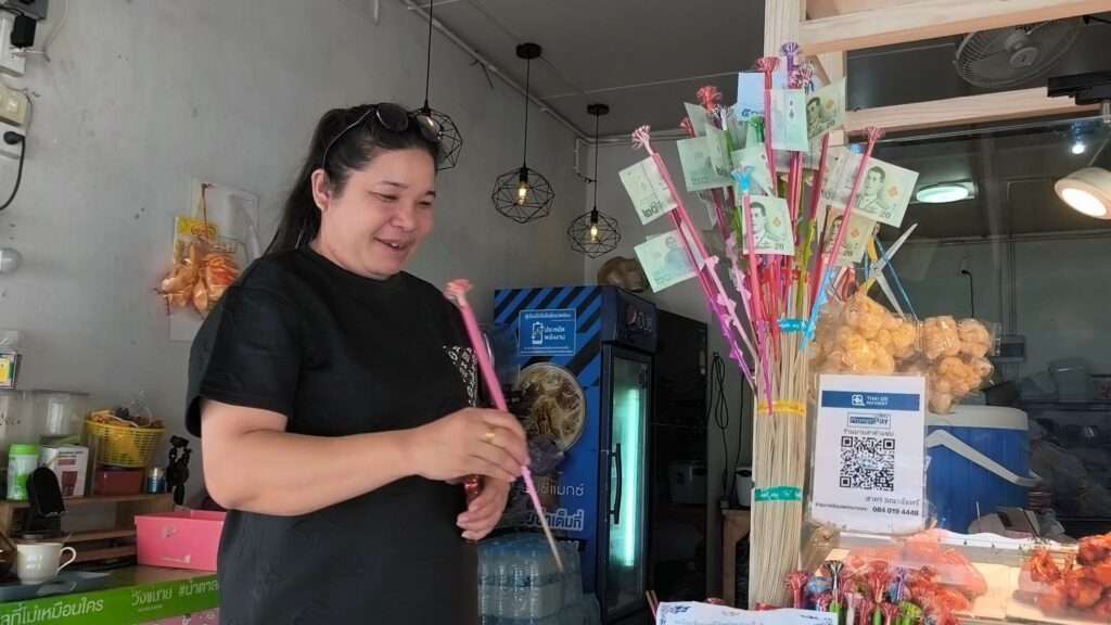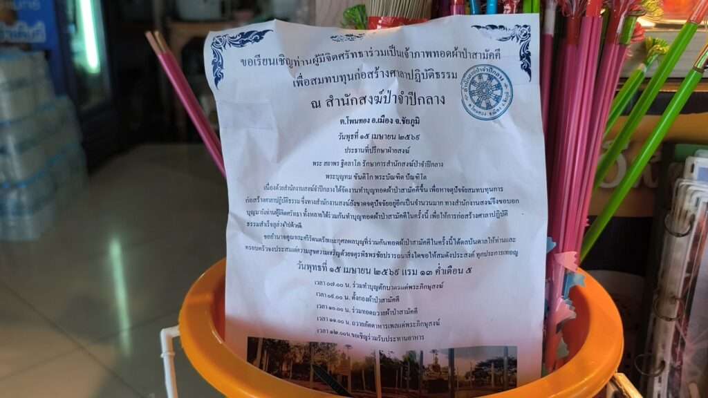 ต่อมาในวันถัดมา หลังเกิดเหตุ ตนสังเกตเห็นว่าถังผ้าป่าที่ตั้งไว้หน้าร้านมีเงินหายไป โดยก่อนหน้านี้มีธนบัตรฉบับละ 100 บาทอยู่ประมาณ 3–4 ใบ ตอนแรกยังเข้าใจว่าอาจหล่นหรือกระเด็นหาย จึงสอบถามพนักงานในร้าน ก่อนจะนึกขึ้นได้ว่ามีกล้องวงจรปิดติดตั้งอยู่ จึงเปิดย้อนดูภาพจากกล้อง