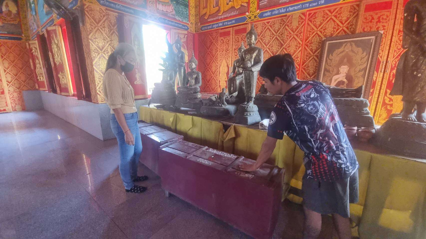 พระทรงศักดิ์ พระลูกวัด กล่าวว่า เมื่อวันที่ 6 มี.ค. ที่ผ่านมา ได้มีชายคนหนึ่งขึ้นไปบนวิหารหวังที่จะขโมยเงินในตู้บริจาคแต่ยังโชคดีที่เด็กวัดอยู่แถววิหารเลยขึ้นไปดูแล้วชายคนดังกล่าวรีบวิ่งหนีไป ซึ่งยังไม่ได้สิ่งของมีค่าไป ก่อนหน้านี้เมื่อวันที่ 10 ก.พ. ที่ผ่านมา ชายคนดังกล่าวก็ได้เข้าไปขโมยของที่วิหาร แต่ไม่ได้อะไรไป และวันที่ 6 มี.ค. ชายคนดังกล่าวก็กลับมาเพื่อที่จะขโมยเงินบริจาคในตู้อีกแต่ก็ยังไม่ได้เงินไป มีเด็กวัดเห็นก่อน อยากบอกชายคนดังกล่าวว่าอย่ามาทำแบบนี้เลย ไม่มีก็มาขอกันดีกว่า