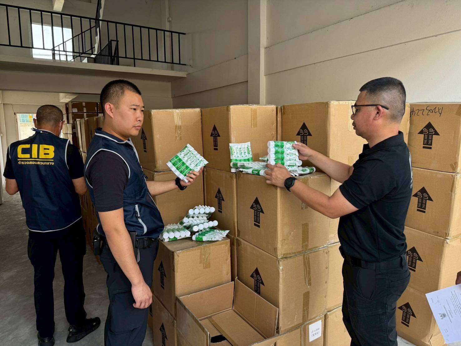 จากการตรวจค้นพบ Mr. Junxiao (นายจวิน เซียว) สัญชาติจีน รับเป็นผู้ดูแลสถานที่ โดยพบสินค้าปลอมและผิดกฎหมาย รวม 10 รายการ จำนวนกว่า 122,872 ชิ้น มูลค่าความเสียหายกว่า 6 ล้านบาท โดยสินค้าที่ถูกปลอมแปลงมากที่สุดคือ ยาสีฟันยี่ห้อ D.dent (ดี.เด้นท์) ซึ่งมียอดตรวจยึดสูงถึง 95,600 หลอด นอกจากนี้ยังมีแบรนด์ดังอื่นๆ อาทิ ยาสีฟัน Dentiste’ (เดนทิสเต้), โลชั่นและครีมบำรุงผิว Garnier (การ์นิเย่), ผลิตภัณฑ์บำรุงผิว Yerpall และเครื่องสำอางฉลากต่างประเทศที่ไม่มีเลขจดแจ้ง เจ้าหน้าที่จึงได้ประสานงานกับบริษัทผู้ผลิตจริง จนได้ข้อสรุปจุดสังเกต ดังนี้