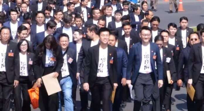 วันที่ 9 มีนาคม 2569 ที่อาคารรัฐสภา สส.พรรคประชาชน นำโดย นายณัฐพงษ์ เรืองปัญญาวุฒิ หัวหน้าพรรคประชาชน ร่วมรายงานตัวเข้ารับตำแหน่งอย่างเป็นทางการ โดย สส.พรรคประชาชน ได้ร่วมเดินทางจากอาคารอนาคตใหม่โดยรถเมล์จ้างเหมา ก่อนเดินเข้าสู่อาคารรัฐสภาเพื่อรายงานตัวโดยพร้อมเพรียงกัน