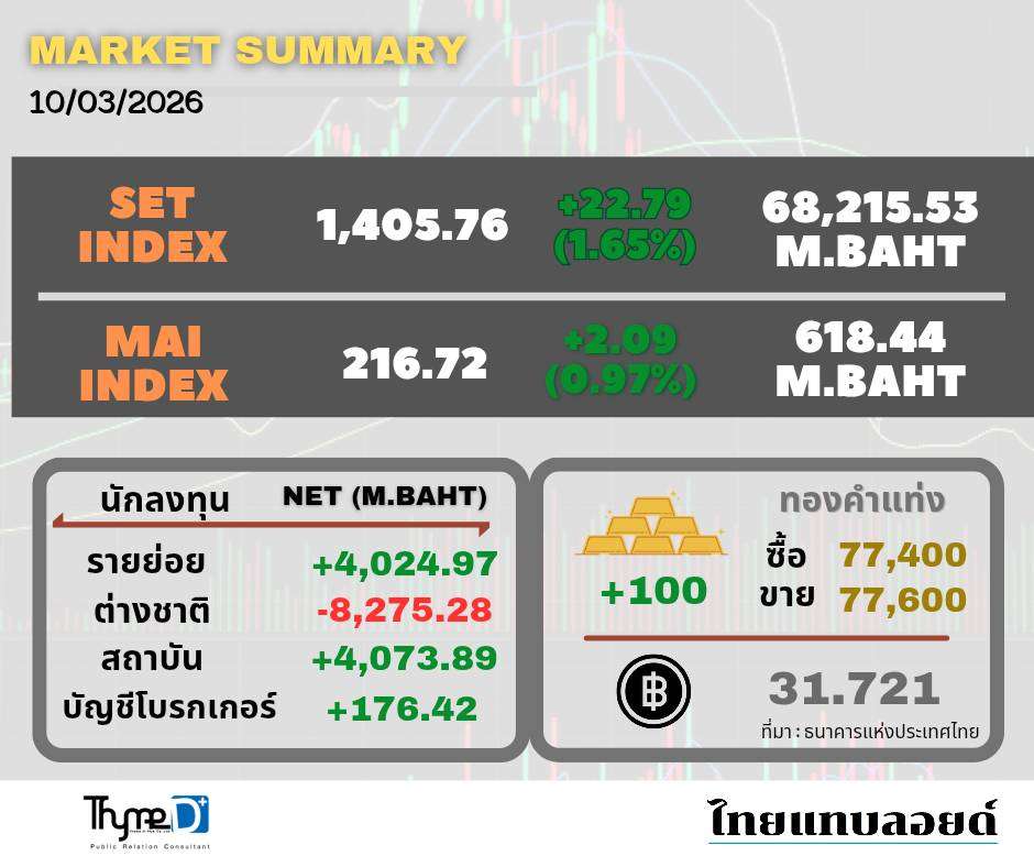 สรุปภาวะการลงทุนในตลาดหลักทรัพย์ ประจำวันที่ 10 มีนาคม 2569