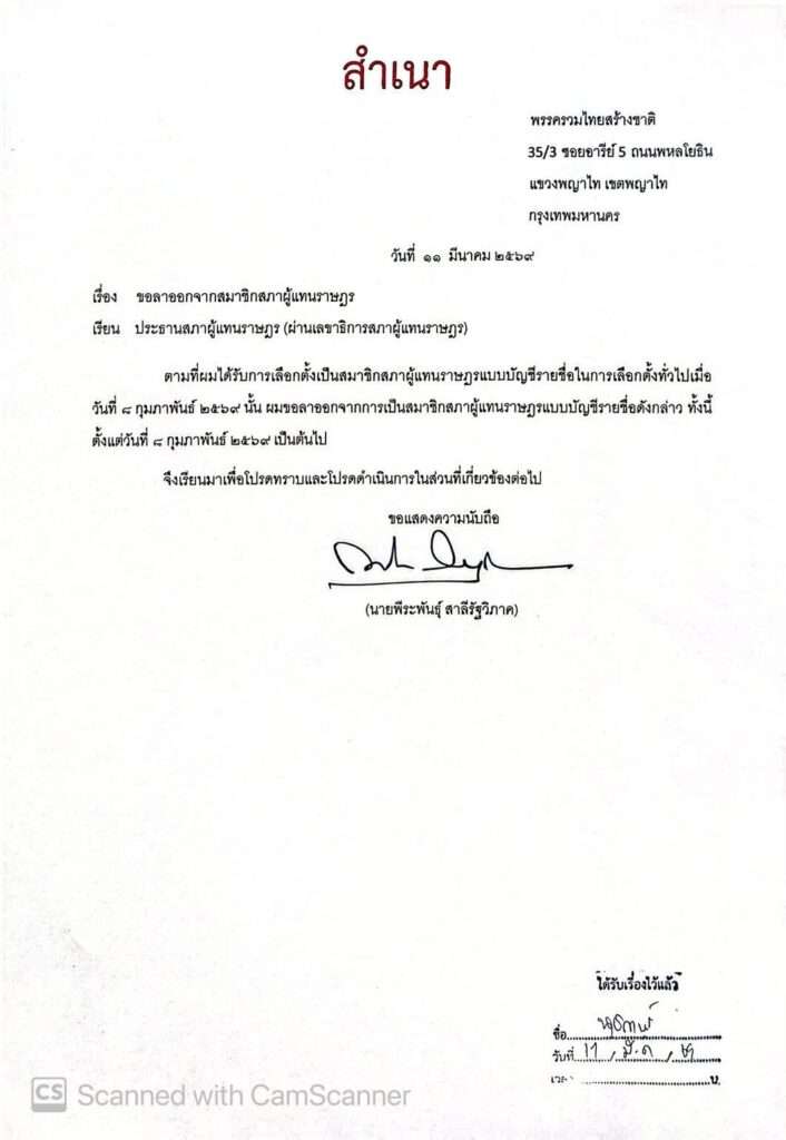 ด้วยเหตุนี้ จึงได้เสนอให้ นาย อรรถวิชช์ สุวรรณภักดี รองหัวหน้าพรรค เข้าไปทำหน้าที่ในสภาผู้แทนราษฎรแทนตน โดยมั่นใจว่าเป็นผู้มีความรู้ ความสามารถ และประสบการณ์ พร้อมที่จะทำหน้าที่ดังกล่าวได้อย่างสมบูรณ์ และเกิดประโยชน์สูงสุดต่อพรรคและพี่น้องประชาชน