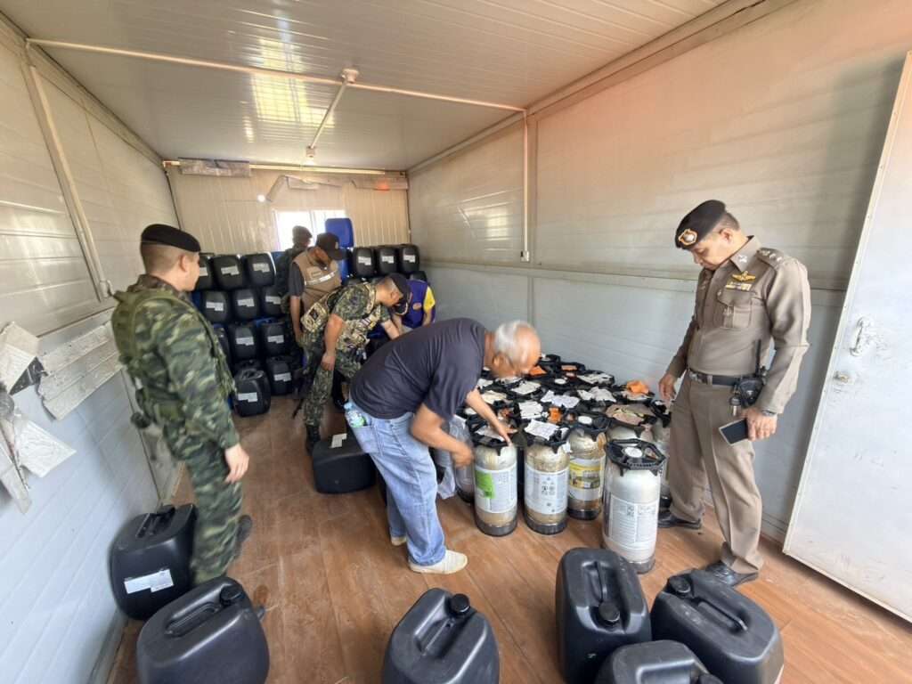 เมื่อวันที่ 12 มี.ค. 2569 พล.ต.ณัฏฐพงศ์ อัศวินวงศ์ ผู้บัญชาการ กองพลทหารราบที่ 9 ในฐานะผู้บัญชาการ กองกำลังสุรสีห์ เปิดเผยว่า กองกำลังสุรสีห์สนธิกำลังตำรวจ ฝ่ายปกครอง และหน่วยงานที่เกี่ยวข้อง บุกตรวจยึดเบียร์สดต่างประเทศกว่า 800 ลิตร ซุกซ่อนในตู้คอนเทนเนอร์บริเวณชายแดน จ.กาญจนบุรี หลังได้รับแจ้งข่าวกรองว่ามีการลักลอบขนสินค้าผิดกฎหมาย คาดเตรียมส่งต่อไปยังสถานบันเทิงครบวงจรที่เชื่อมโยงเครือข่ายแก๊งสแกมเมอร์ฝั่งประเทศเพื่อนบ้าน