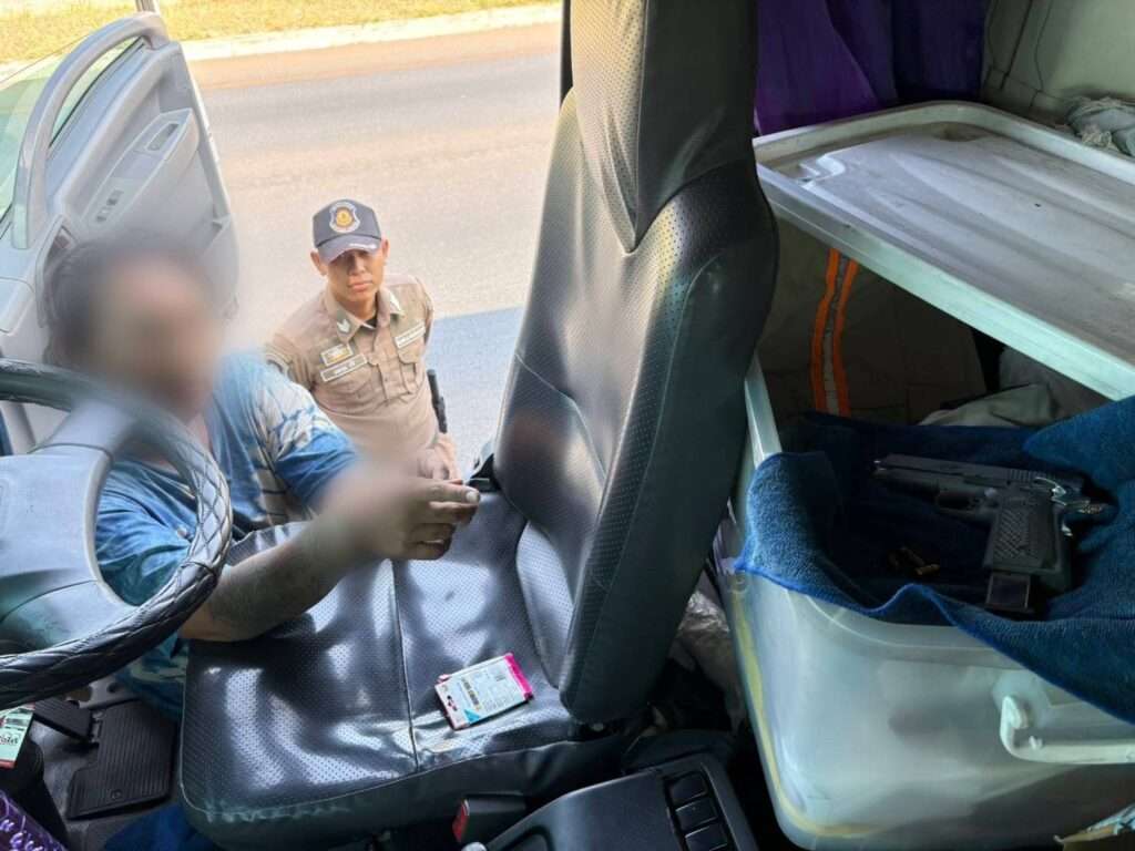 จากการตรวจสอบพบผู้ขับขี่คือ นายมนัส และมี น.ส.นิภาวรรณ แฟนสาวนั่งโดยสารมาด้านหน้ารถ เจ้าหน้าที่จึงแจ้งเหตุอันควรสงสัยและขอทำการตรวจค้นภายในห้องโดยสาร ก่อนพบอาวุธปืนพร้อมกระสุนถูกห่อด้วยผ้าขนหนูสีน้ำเงิน ซุกอยู่ภายในกล่องพลาสติกบริเวณด้านหลังเบาะคนขับ