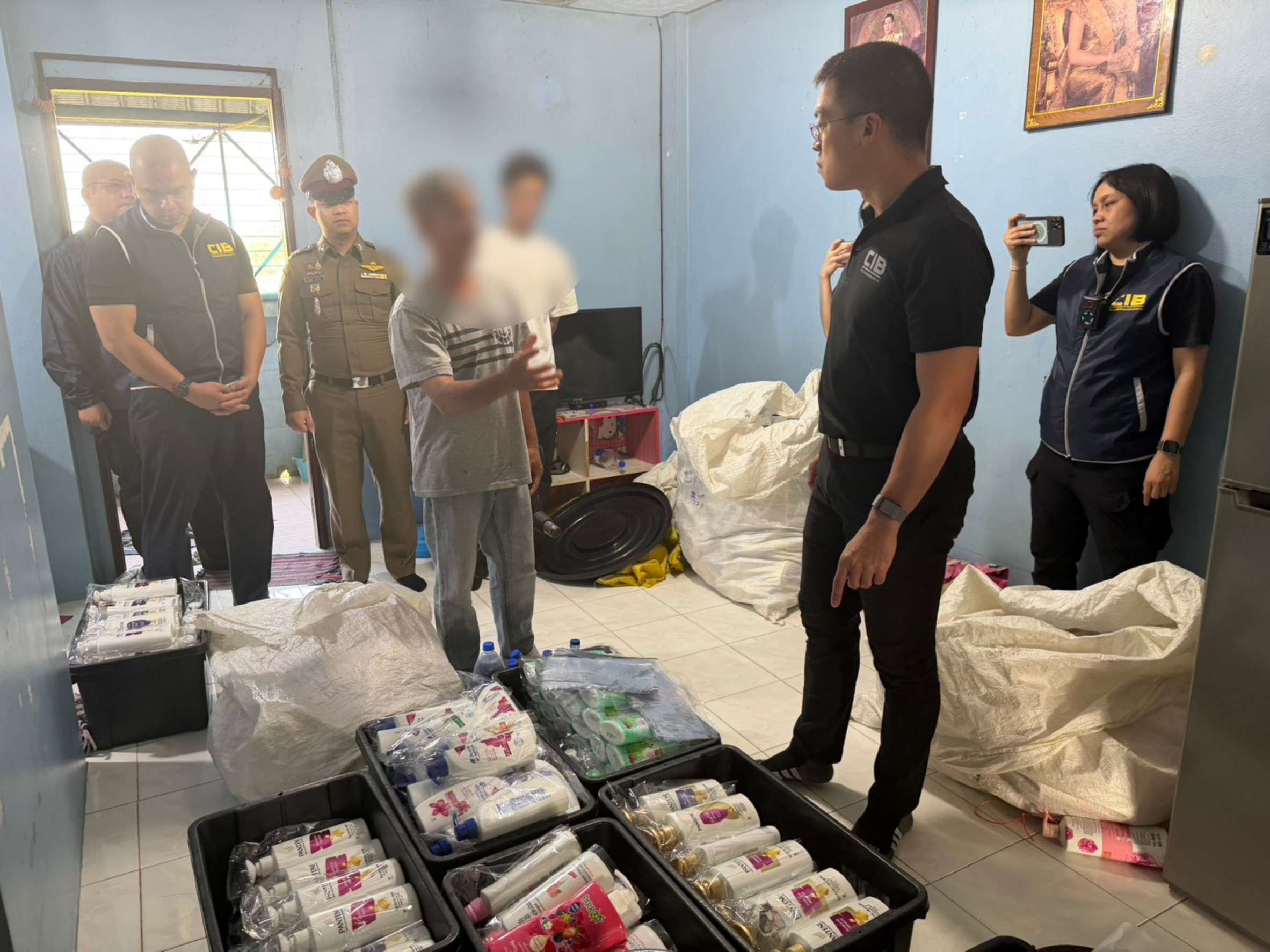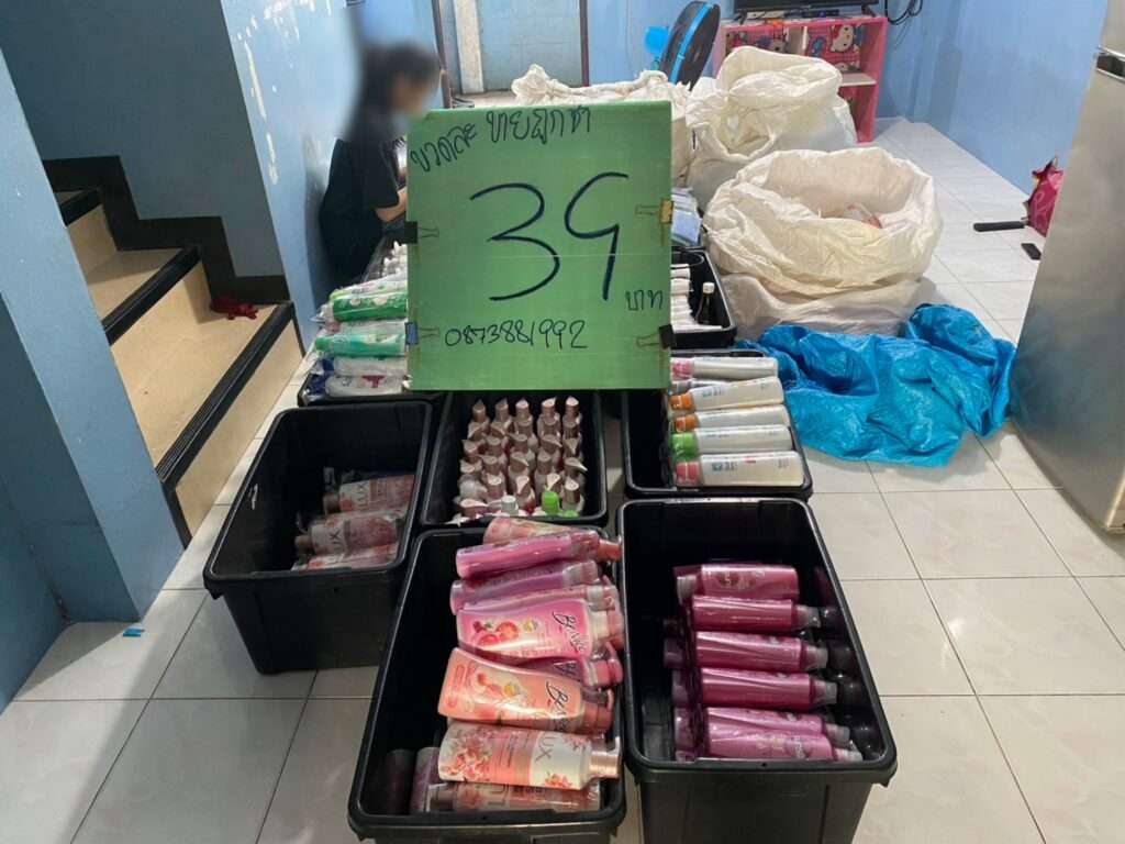 ปอศ. จับชายวัย 60 ปี หัวใสแปลงบ้านพักเป็นโรงงานแชมพู เลียนแบบแบรนด์ดังนับพันชิ้น ยึดของกลาง 21 รายการ 1,413 ชิ้น ตระเวนขายตลาดนัดราคาถูก
