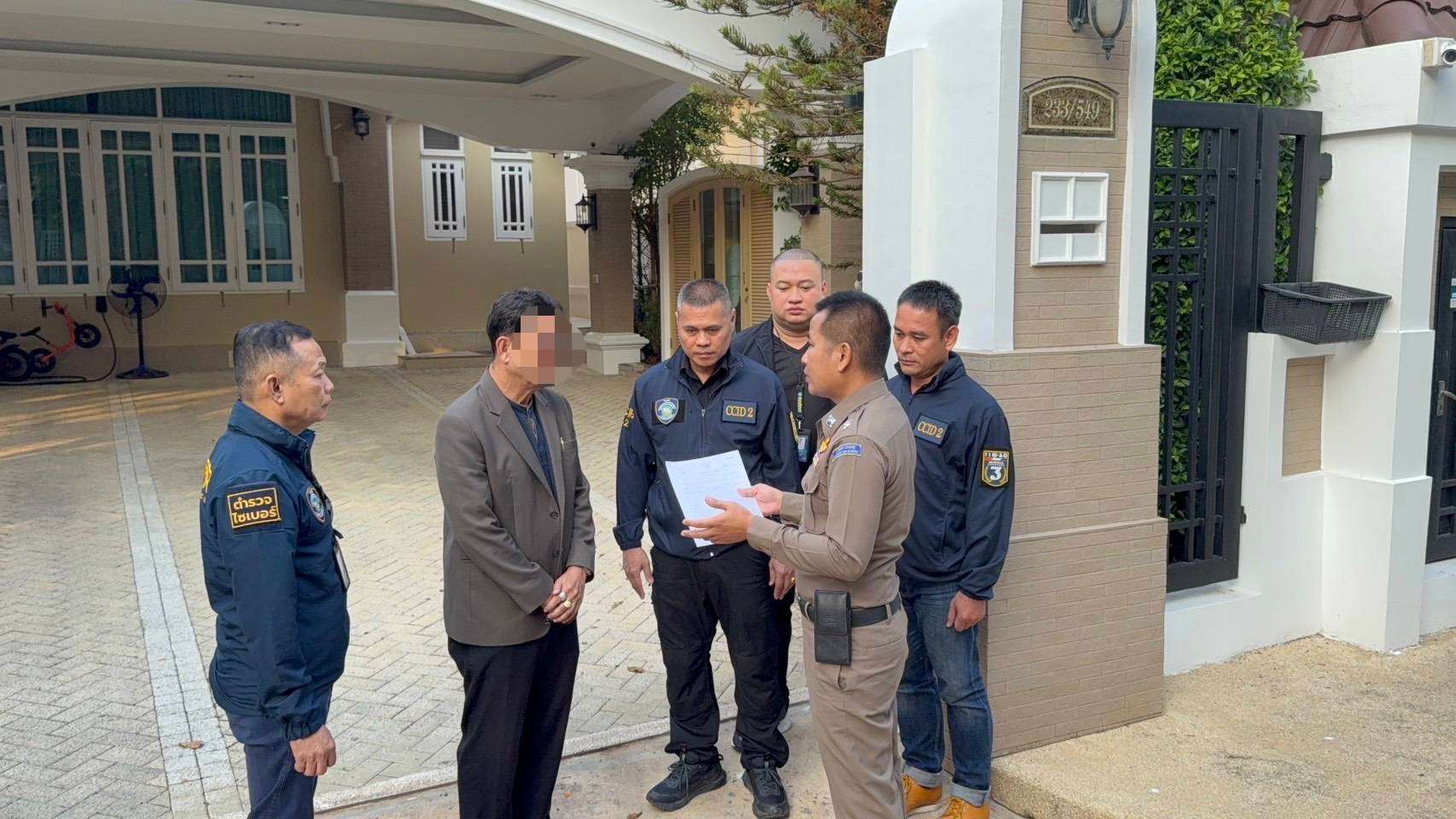 ตร.ไซเบอร์ ค้นบ้านพี่ชายนักการเมืองท้องถิ่นเมืองปากน้ำ เอี่ยวคดีหลอกลงทุนและฟอกเงิน