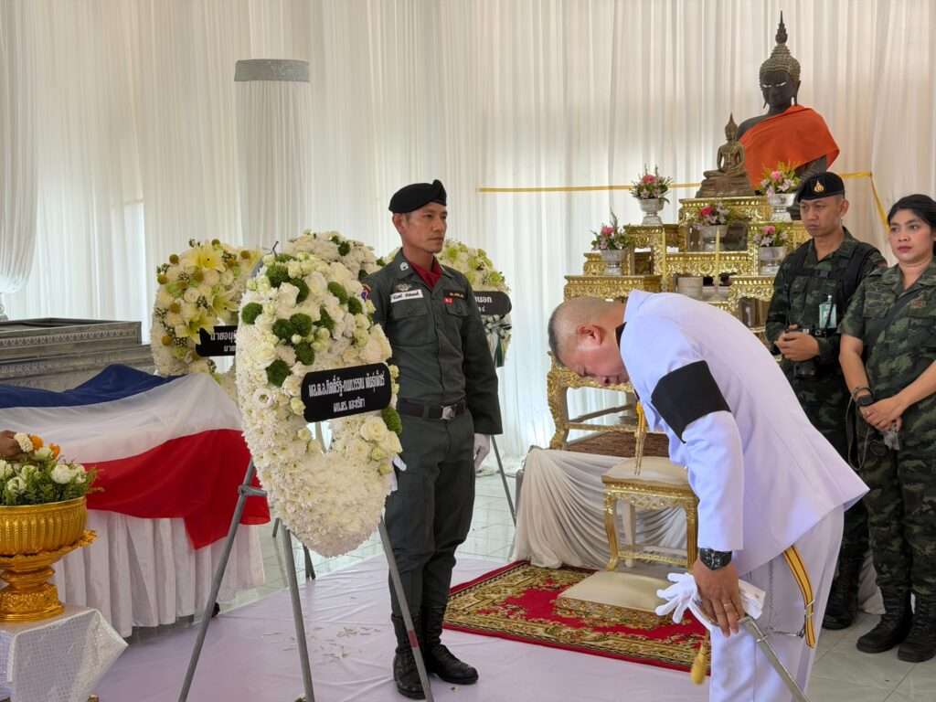 อาลัย “ตชด.ผู้กล้า” ผบช.ตชด. นำความห่วงใยจาก ผบ.ตร. ร่วมพิธีรดน้ำศพ มอบเงินช่วยเหลือเบื้องต้น พร้อมส่งกำลังใจถึงครอบครัวและกำลังพลชายแดนใต้ ย้ำดูแลสวัสดิการเต็มที่ เชิดชูผู้เสียสละเพื่อความสงบสุขของประเทศ ท่ามกลางบรรยากาศโศกเศร้าและความอาลัยจากเพื่อนร่วมงาน–ประชาชนจำนวนมาก.