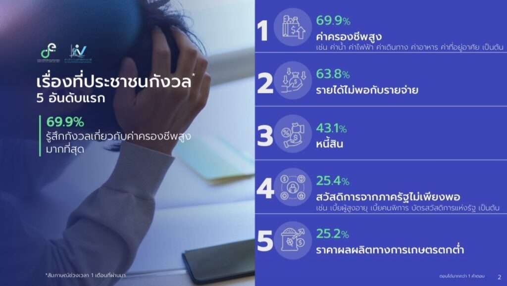 กรุงเทพฯ, วันที่ 17 มี.ค. – นายเอกพงษ์ หริ่มเจริญ ผู้อำนวยการสำนักงานสถิติแห่งชาติ แถลงถึงผลการสำรวจความคิดเห็นของประชาชนต่อรัฐบาลชุดใหม่ พ.ศ. 2569 ระหว่างวันที่ 22 – 28 มกราคม 2569”พบว่า “ค่าครองชีพสูง” เป็นประเด็นที่ประชาชนมีความกังวลมากที่สุด สะท้อนความท้าทายด้านเศรษฐกิจและคุณภาพชีวิตที่ประชาชนเผชิญอยู่ในปัจจุบัน โดย ประชาชนตัวอย่างร้อยละ 69.9 มีความกังวลเกี่ยวกับค่าครองชีพสูงมากที่สุด รองลงมา เช่น รายได้ไม่พอกับรายจ่าย (ร้อยละ 63.8) หนี้สิน (ร้อยละ 43.1) สวัสดิการจากภาครัฐไม่เพียงพอ (ร้อยละ 25.4) และราคาผลผลิตทางการเกษตรตกต่ำ (ร้อยละ 25.2) เป็นต้น