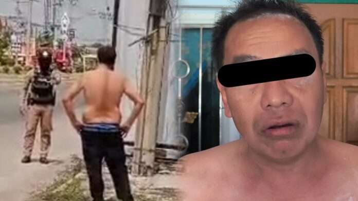 จากการสอบถาม นายชาฏินันท์ นครขวาง อายุ 36 ปี เจ้าของร้านก๋วยเตี๋ยวบ้านนคร ซึ่งอยู่ในเหตุการณ์ เล่าว่า เวลาประมาณ 11.00 น. เห็นชายลักษณะคล้ายมีอาการคลุ้มคลั่งเดินอยู่บริเวณเกาะกลางถนน ขณะนั้นมีรถบรรทุกสิบล้อวิ่งผ่าน ชายคนดังกล่าวได้ถอดเอี๊ยมขว้างลงพื้นก่อนกระโดดวิ่งเข้าไปหารถจนเกือบถูกรถชน เมื่อรถสิบล้อขับผ่านไปก็ยังยืนโวยวายอยู่กลางถนน ต่อมาเมื่อเดินมาถึงหน้าร้านของตน มีทั้งรถขยะและรถโดยสารประจำทางกำลังวิ่งมา ชายคนดังกล่าวได้ตะโกนด่าทอและทำท่าจะกระโดดเข้าไปขวางรถเพื่อให้รถชน แต่โชคดีที่คนขับรถทั้งสองคันเห็นเหตุการณ์ก่อนจึงหยุดรถหลบทัน