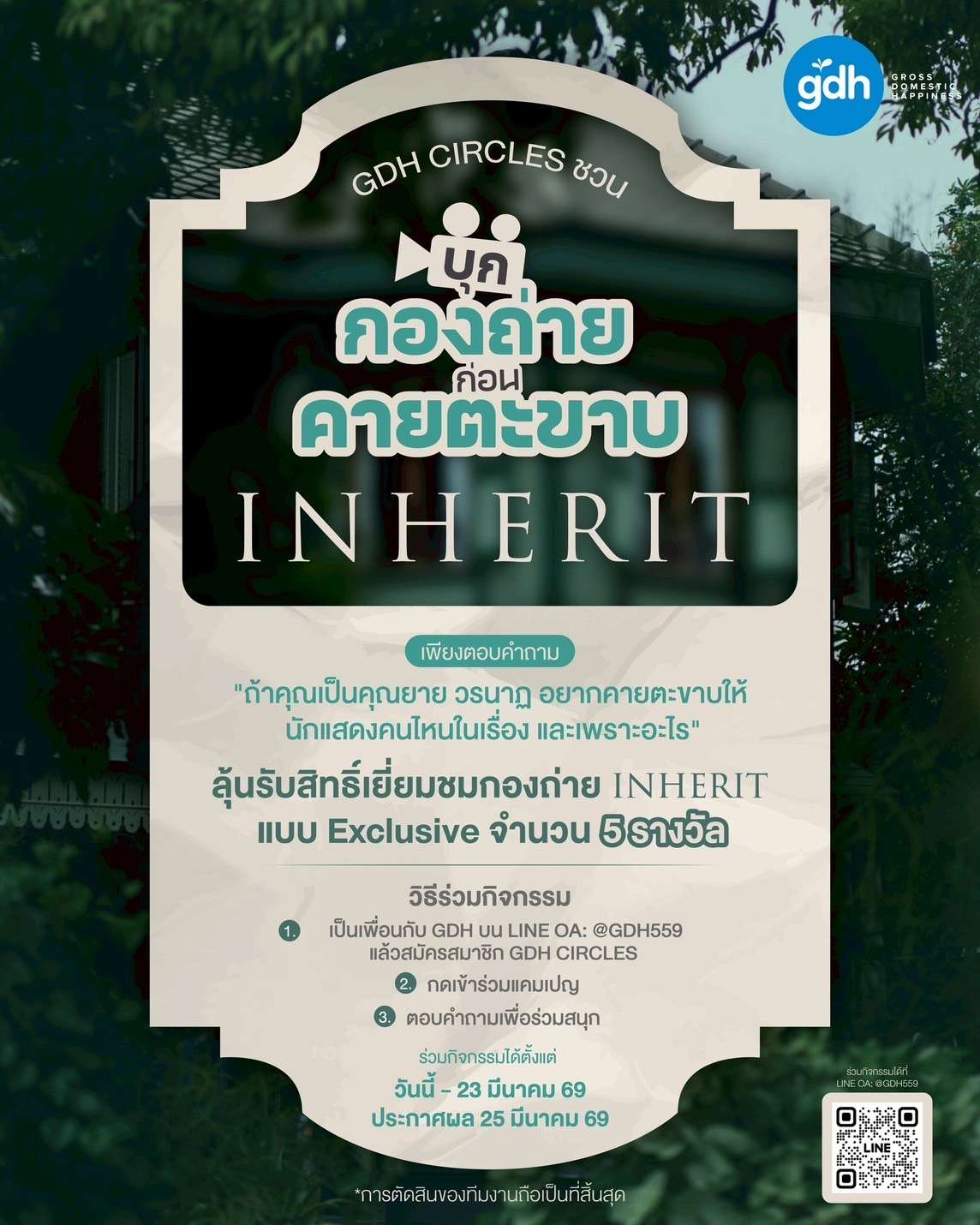 ห้ามพลาด! “GDH CIRCLES” เปิดประสบการณ์สุดเอ็กซ์คลูซีฟ ชวนแฟนๆ “บุกกองถ่าย ก่อนคายตะขาบ” ใกล้ชิดภาพยนตร์เรื่อง “INHERIT”