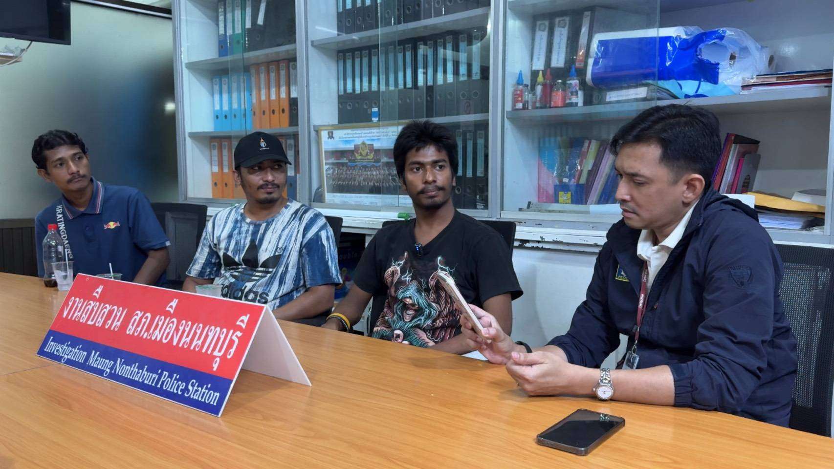 ต่อมาวันนี้ (21 มี.ค. 69) เวลา 13.00 น. ที่ สภ.เมืองนนทบุรี พ.ต.อ.ชยชัย นาธนกาญจน์ ผกก.สภ.เมืองนนทบุรี , พ.ต.ท.เฉลิมฤทธิ์ ถาวร รองผกก.สส.สภ.เมืองนนทบุรี , พ.ต.ท.ธราธิป เพ็งขำ สว.สส.สภ.เมืองนนทบุรี พร้อมฝ่ายสืบสวน ได้เชิญตัวนายชาฟี มูฮัมมัดลอฟิก อายุ 30 ปี, นายนพรัตน์ หรือฮาซัน อายุ 26 ปี, นายอามีนคาน มูฮัมมัด อายุ 21 ปี ซึ่งเป็นผู้ก่อเหตุ รวมทั้ง น.ส.พรไพลิน อายุ 23 ปี และนายบาบู อายุ 46 ปี บิดาของฝ่ายหญิง เข้าสอบปากคำเพื่อรวบรวมพยานหลักฐานดำเนินการตามขั้นตอนกฎหมาย