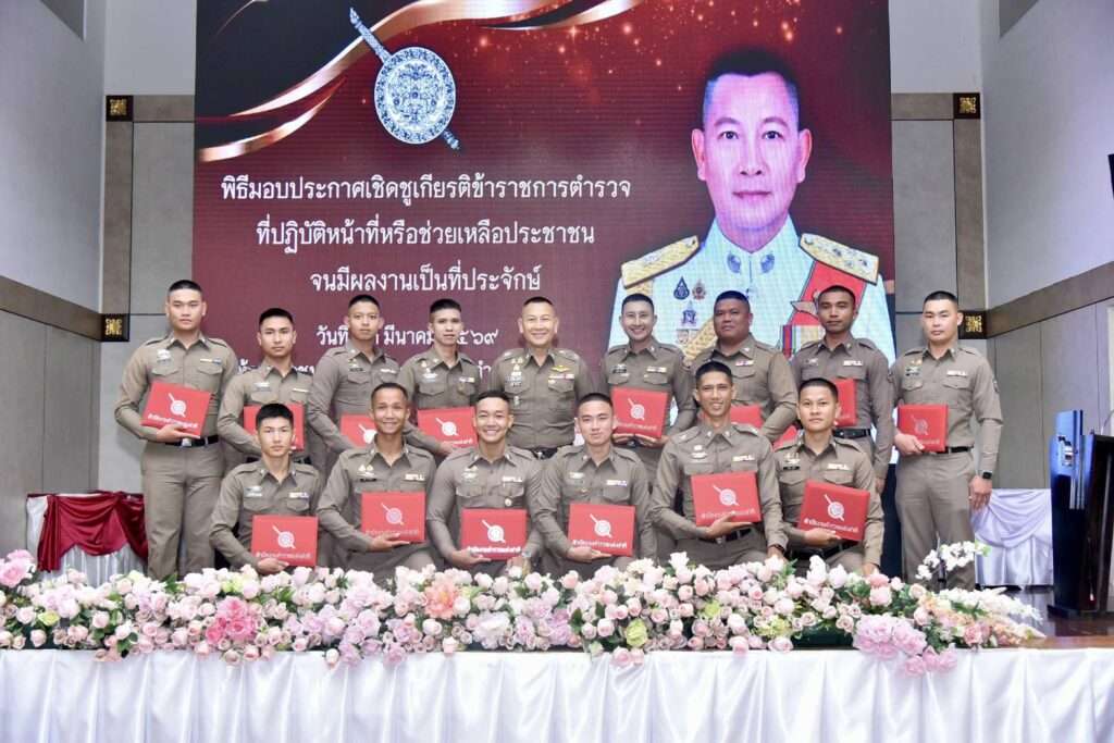 วันนี้ (23 มีนาคม 2569) เวลา 13.00 น. พล.ต.อ.กิตติ์รัฐ พันธุ์เพ็ชร์ ผู้บัญชาการตำรวจแห่งชาติ (ผบ.ตร.) เป็นประธานพิธีมอบประกาศเชิดชูเกียรติข้าราชการตำรวจที่ปฏิบัติหน้าที่หรือช่วยเหลือประชาชนจนมีผลงานเป็นที่ประจักษ์ ตามนโยบายการบริหารราชการของสำนักงานตำรวจแห่งชาติ โครงการ “ทำดีมีรางวัล ทำไม่ดีมีโทษ” โดยมี รอง ผบ.ตร., จเรตำรวจแห่งชาติ (จตช.), ผู้ช่วย ผบ.ตร. และ รอง จตช. ร่วมพิธี ณ ห้องศรียานนท์ อาคาร 1 สำนักงานตำรวจแห่งชาติ