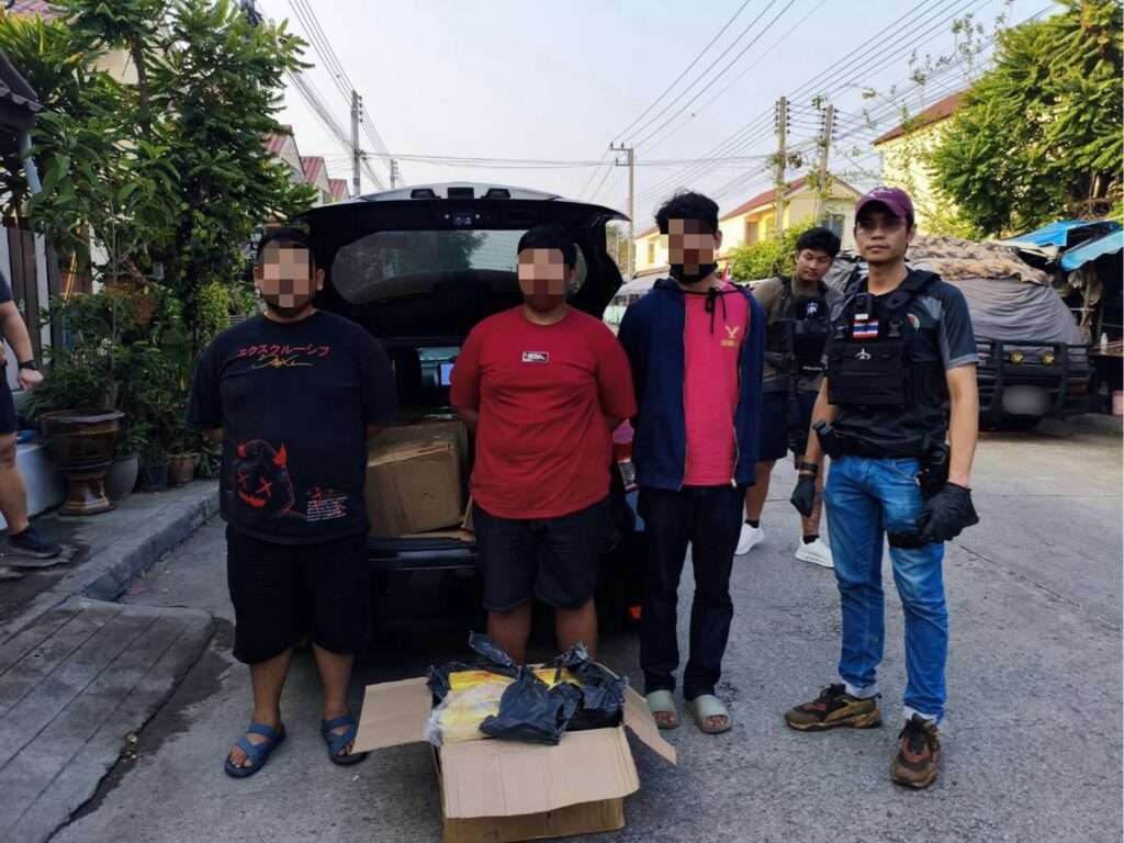 คดีดังกล่าวเหตุเกิด เมื่อวันที่ 23 มีนาคม 2569 ที่ผ่านมา เวลาประมาณ 06.30 น.โดยสามารถจับกุมตรวจยึดได้ที่บริเวณกลางซอยหมู่บ้าน ต.บึงสนั่น อ.ธัญบุรี จ.ปทุมธานีจับกุมผู้ต้องหา จำนวน 3 ราย(1.)นายปูสิทธุ์ สงวนนามสกุล อายุ 27 ปี ผู้ต้องหาที่ 1 (2.)นายประกิจ สงวนนามสกุล อายุ 34 ปี ผู้ต้องหาที่ 2 (3.)นายสุระเดช สงวนนามสกุล อายุ 32 ปี ผู้ต้องหาที่ 3