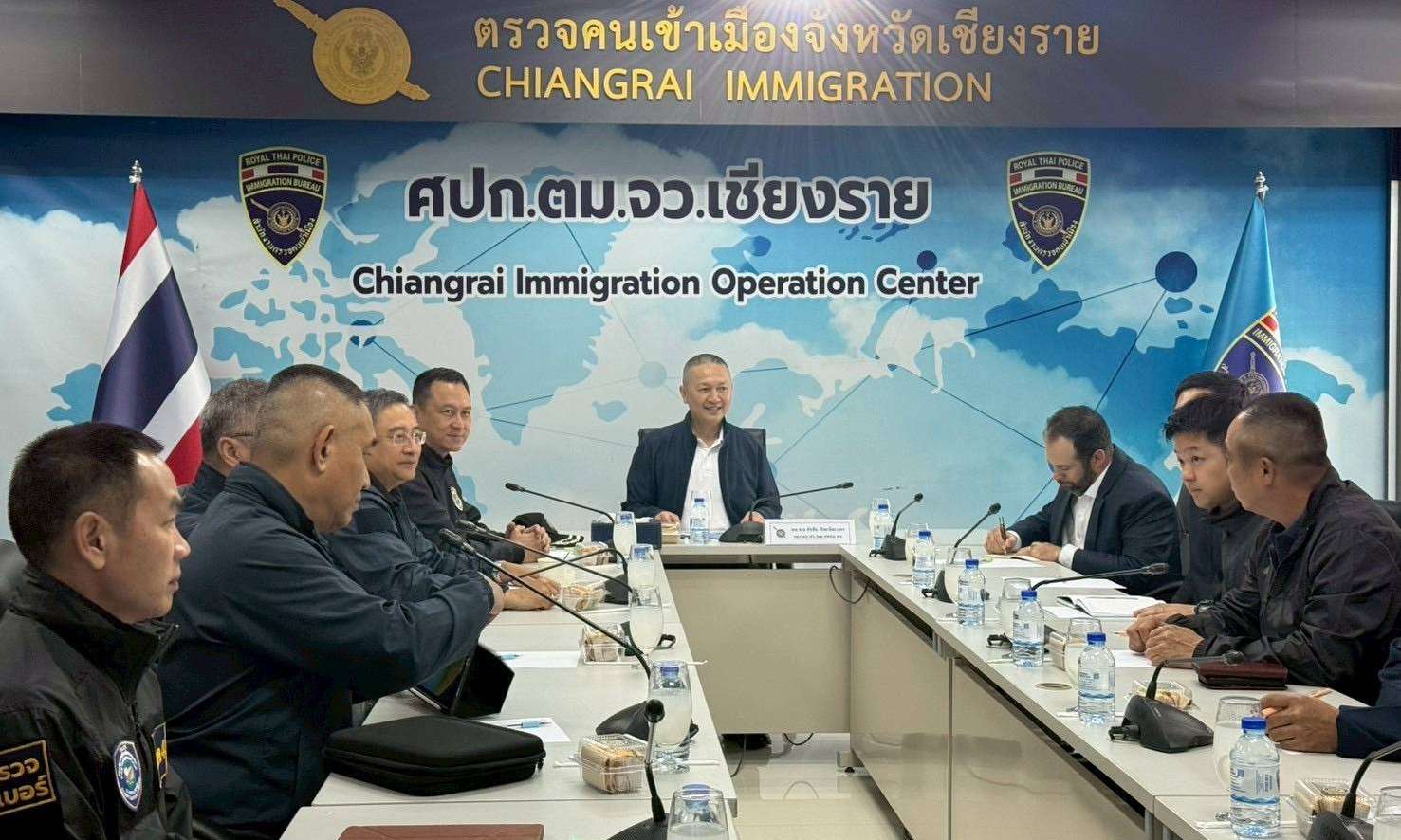 วันนี้ (24 มีนาคม 2569) เวลา 09.00 น. พล.ต.อ.กิตติ์รัฐ พันธุ์เพ็ชร์ ผู้บัญชาการตำรวจแห่งชาติ (ผบ.ตร.) มอบหมายให้ พล.ต.อ.ธัชชัย ปิตะนีละบุตร รอง ผบ.ตร. ในฐานะผู้อำนวยการศูนย์ต่อต้านการค้ามนุษย์ (ผอ.ศตคม.ตร.) สำนักงานตำรวจแห่งชาติ เดินทางไปประชุมตรวจสอบกรณีพบการกระทำความผิดเกี่ยวกับอาชญากรรมออนไลน์ ตามนโยบายนายอนุทิน ชาญวีรกูล นายกรัฐมนตรี โดยมีการจับกุม 24 คนไทย ในฝั่งเมืองท่าขี้เหล็ก ประเทศเมียนมา โดยมี พล.ต.ท.อรรถสิทธิ์ สุดสงวน จเรตำรวจ/หัวหน้าส่วนปฏิบัติการต่อต้านการค้ามนุษย์ ศตคม.ตร., พ.ต.อ.ณัฐ พรหมเทพ รองผู้บังคับการกองการต่างประเทศ ปฏิบัติหน้าที่ผู้ช่วยทูตฝ่ายตำรวจประจำสถานทูตไทย ณ กรุงย่างกุ้ง, นายสุริยน ประภาสะวัต รองอธิบดีอัยการ สำนักงานการสอบสวน, พร้อมผู้แทนจากตำรวจภูธรภาค 5, กองบัญชาการตำรวจสืบสวนสอบสวนอาชญากรรมทางเทคโนโลยี, สำนักงานตรวจคนเข้าเมือง, กองบังคับการปราบปรามการค้ามนุษย์, ผู้แทนจากหน่วยงานบังคับใช้กฎหมายจากสหรัฐอเมริกา ญี่ปุ่น และผู้แทนหน่วยประสานงานชายแดนไทย-เมียนมา (TBC) ร่วมประชุม ณ ศูนย์ปฏิบัติการตรวจคนเข้าเมืองจังหวัดเชียงราย