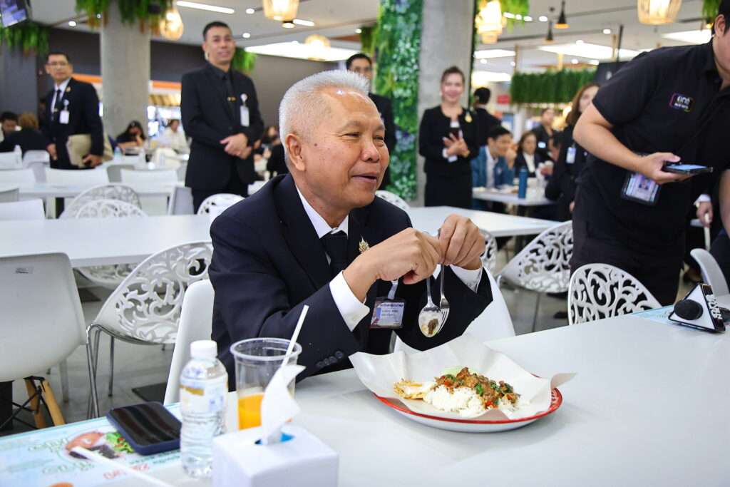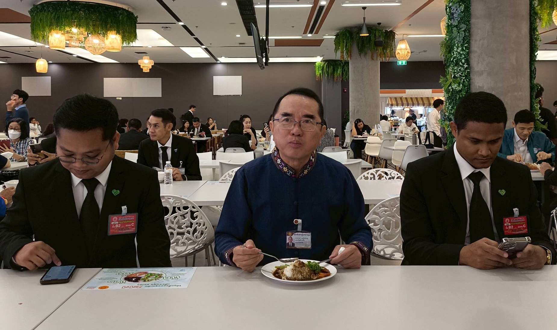 จากนั้น นพ.วรงค์ ได้สแกนจ่ายค่าข้าว ในราคา 60 บาท ก่อนจะเดินไปที่โต๊ะรับประทานอาหารร่วมกับผู้ช่วย สส. โดยยืนยันว่าอาหารที่โรงอาหารสภาอร่อยจริง ไม่ต่างจากอาหารฟรีที่ สส.ได้รับ