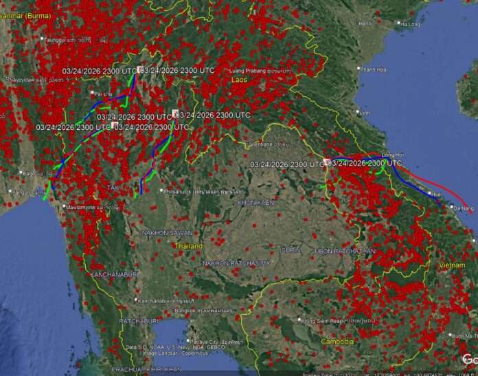 ข้อมูลจุดความร้อน ณ วันที่ 24 มีนาคม 2569 พบว่า ประเทศไทยพบจุดความร้อนทั้งสิ้น 2,145 จุด ส่วนใหญ่พบในพื้นที่ป่ากว่า 1,813 จุด คิดเป็นร้อยละ 85 จังหวัดที่พบจุดความร้อนสูงสุดได้แก่ ลำปาง ตาก เชียงใหม่ แพร่ และพะเยา ตามลำดับ ทั้งนี้ จุดความร้อนในประเทศเพื่อนบ้าน โดยเฉพาะบริเวณที่ประชิดกับภาคเหนือและภาคอีสานขยับสูงขึ้นเช่นกัน