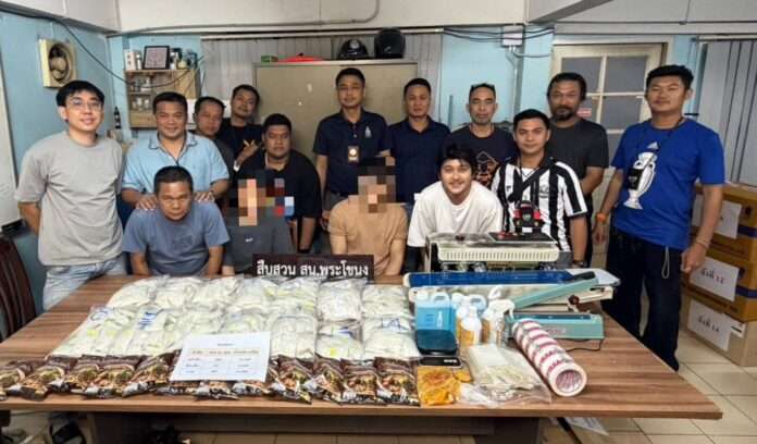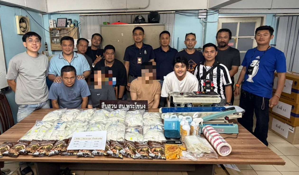 ตำรวจสืบสวน สน.พระโขนง บุกจับ 2 ผู้ต้องหาคอนโดฯ ย่านลาดพร้าว พบเฮโรอีน 346 ถุง น้ำหนักกว่า 11 กิโลกรัม และคีตามีน 61 ถุง กว่า 2 กิโลกรัม ซุกซ่อนในถุงก๋วยเตี๋ยวสำเร็จรูป พร้อมอุปกรณ์แพ็กยาเสพติดจำนวนมาก