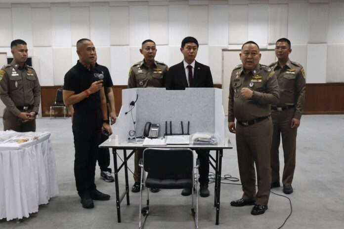 วันที่ 30 มี.ค. ที่ กองบัญชาการตำรวจสอบสวนกลาง พล.ต.ท.ณัฐศักดิ์ เชาวนาศัย ผบช.ก. พล.ต.ต.ชนันนัทธ์ สารถวัลย์แพศย์ ผบก.ปอท. พ.ต.อ.ภานุภัท กิตติพันธ์ ผกก.1 บก.ปอท. ร่วมกับ เจ้าหน้าที่กงสุลตำรวจ สถานเอกอัครราชทูตสาธารณรัฐเกาหลีประจำประเทศไทย แถลงผลปฏิบัติการ “Thailand-Korea Breaking Chains EP.2” ทลายแก๊งคอลเซ็นเตอร์สัญชาติเกาหลีใต้ ผู้ต้องหาจำนวน 11 ราย ประกอบด้วย นายกอนโก (MR.GEON) อายุ 25 ปี ,นายดงฮวา (MR.DONGHWA) อายุ 25 ปี, นายจุนกี (MR.JUNGI) อายุ 35 ปี ,นายนูรี (MR.NURI ) อายุ 35 ปี , นายซอกอู (MR.SEOKWOO) อายุ 31 ปี นายฮยอนอู (MR.HYUNWOO) อายุ 33 ปี ,นายจองกู (MR.JEONGGU) อายุ 31 ปี ,นายกวังมิน (MR.GWANGMIN) อายุ 19 ปี , นายยงกยู (MR.YONGGYU) อายุ 39 ปี , นางยุนคโย (MS.YUNKYO) อายุ 27 ปี และ นางฮเยรี (MS.HYERI) อายุ 32 ปี พร้อมของกลาง อุปกรณ์คอมพิวเตอร์ และโทรศัพท์ VoIP จำนวน 11 เครื่อง, โทรศัพท์มือถือ จำนวน 33 เครื่อง, บทสคริปต์หลอกลวง,เงินสด และเอกสารอื่น ๆ อีกหลายรายการ