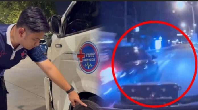 เมื่อเวลา 19.00 น. วันที่ 30 มี.ค. 69 ผู้สื่อข่าวเดินทางไปพบนายภาสวิชญ์ การะเทศ หรือนิว อายุ 24 ปี เจ้าหน้าที่ขับรถบริษัทรถพยาบาลเอกชน TNW Ambulance Service กล่าวว่า เหตุเกิดเมื่อวันที่ 29 มี.ค. 69 ช่วงเวลาประมาณ 01.00 น. ขณะตนกำลังเดินทางกลับบ้าน เมื่อมาถึงแยกประเสริฐอิสลาม ไม่สามารถกลับรถได้ จึงต้องไปกลับตรงสามแยกไฟแดงสามัคคี หลังจากนั้นจึงเบี่ยงเลนขวาเข้ามา จนมาเจอคู่กรณีตรงที่เกิดเหตุ เป็นรถเก๋งโตโยต้า ยาริส สีดำ (ไม่ทราบหมายเลขทะเบียน) ขับรถค่อมเลนมาตลอดทาง ตนจึงบีบแตรเตือน