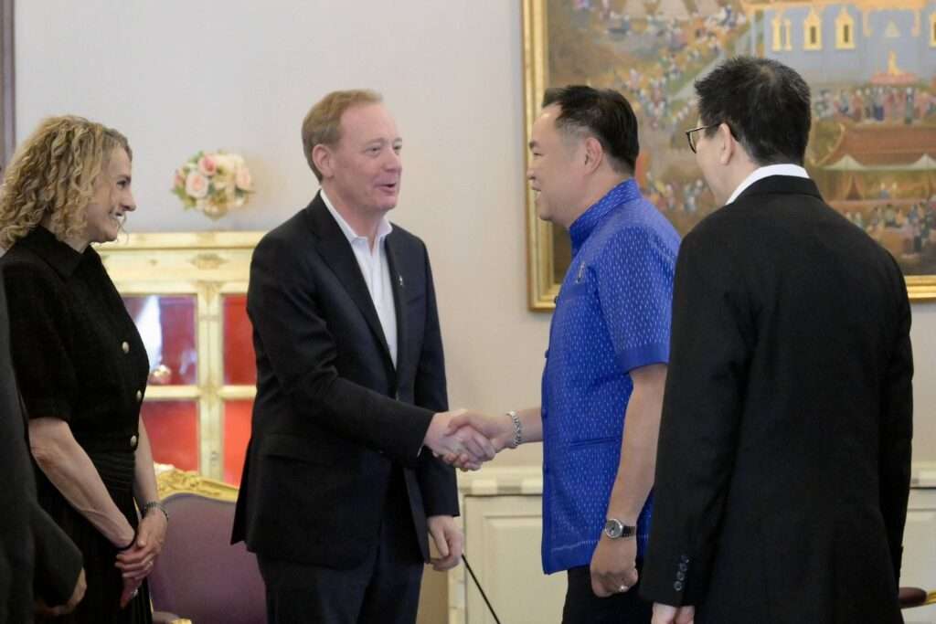 ทำเนียบรัฐบาล, วันที่ 31 มีนาคม – นายแบรด สมิธ (Mr. Brad Smith) รองประธานกรรมการบริหารและประธาน บริษัท ไมโครซอฟท์ คอร์ปอเรชั่น และคณะ เข้าเยี่ยมคารวะนายอนุทิน ชาญวีรกูล นายกรัฐมนตรีและรัฐมนตรีว่าการกระทรวงมหาดไทย ในโอกาสเยือนประเทศไทย ซึ่งนายแบรด ยืนยันความเชื่อมั่นของไมโครซอฟท์ต่อประเทศไทย ประชาชนไทย และรัฐบาลไทย โดยไมโครซอฟท์เตรียมประกาศแผนการลงทุนในไทยเพิ่มเติมจำนวน 1 พันล้านดอลลาร์สหรัฐ หรือประมาณ 3.3 หมื่นล้านบาท ในช่วง 2 ปีข้างหน้า ในโครงสร้างพื้นฐานด้านคลาวด์และ AI พร้อมทั้งมีความร่วมมือกับภาคเอกชนของไทย และให้การสนับสนุนด้านการพัฒนาบุคลากรไทย ซึ่งทั้งหมดนี้ สะท้อนความเชื่อมั่นของไมโครซอฟท์ต่ออนาคตของประเทศไทย