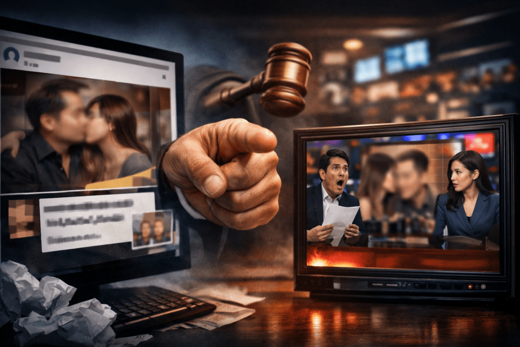 พาดหัวแรง แต่ไร้ความรับผิดชอบ ข้อความประเภท“แอบตีท้ายครัว“เมียรองผู้กำกับ”มีคลิปเป็นหลักฐาน”ถูกโยนลงมาแบบไม่มีการตรวจสอบข้อเท็จจริง ไม่มีแหล่งข่าวอ้างอิง ไม่มีการให้สิทธิ์ผู้ถูกกล่าวหาได้ชี้แจงนี่คือ “ศาลเตี้ยทางโซเชียล” ไม่ใช่งาน