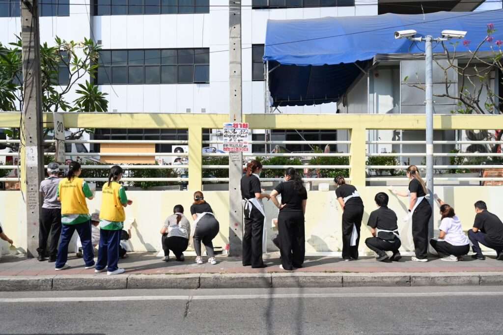 สำหรับกิจกรรมในวันนี้ ทางคณะผู้บริหาร บุคลากรโรงพยาบาลฯ คณะผู้บริหาร บุคลากรบริษัทเฌอร่าฯ คณะผู้บริหาร บุคลากรโรงแรมโฟร์ซีซั่นส์ กรุงเทพฯ และจิตอาสา Yellow Birds ได้ร่วมกันทาสีรั้วกำแพงโรงพยาบาลฯ ณ บริเวณรั้วกำแพง (ตรงข้ามตลาดเสรี 2) ตลอดแนวรั้ว ไปจนถึงรั้วด้านข้างปู่พรหมเจริญกรุงฯ กิจกรรมนี้ได้รับความร่วมมือจากบริษัทเฌอร่า จำกัด (มหาชน) ด้วยการสนับสนุนสีทาภายนอก พร้อมอุปกรณ์ทาสี อาหารและเครื่องดื่มในการทาสีรั้ว