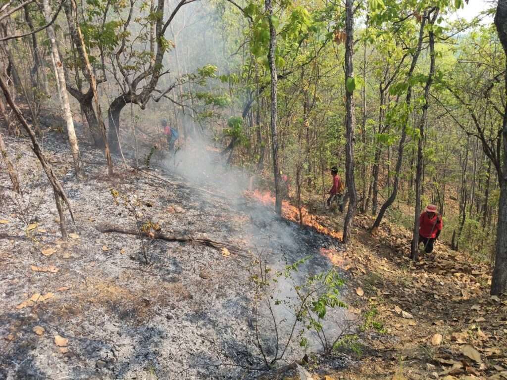 ภายหลังจากเจ้าหน้าที่เข้าควบคุมเพลิงในเบื้องต้นได้สำเร็จ และทำการสำรวจโดยรอบเพื่อหาต้นตอของเพลิง เมื่อเวลา 09.23 น. บริเวณพื้นที่รอยต่อระหว่างบ้านห้วยทรายและบ้านแปะ เจ้าหน้าที่ได้ตรวจพบ “คบเพลิง” ประดิษฐ์เอง สภาพเพิ่งผ่านการใช้งานตกอยู่ในจุดต้นเพลิง ”การพบหลักฐานครั้งนี้เป็นเครื่องยืนยันชัดเจนว่า เหตุไฟป่าที่เกิดขึ้นเป็นการตั้งใจวางเพลิงเพื่อวัตถุประสงค์บางอย่าง แม้จะไม่พบตัวผู้กระทำผิดในที่เกิดเหตุเนื่องจากภูมิประเทศเอื้อต่อการหลบหนี แต่เจ้าหน้าที่ได้บันทึกภาพและเก็บหลักฐานอย่างละเอียดเพื่อดำเนินคดี” อธิบดี อช. กล่าว