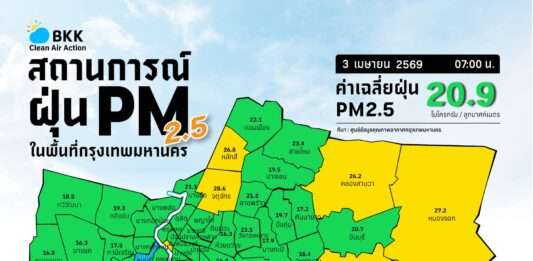 กทม.อากาศดีต่อเนื่อง! PM2.5 เฉลี่ย 20.9 ไมโครกรัม แนวโน้มฝุ่นลดลงทุกพื้นที่