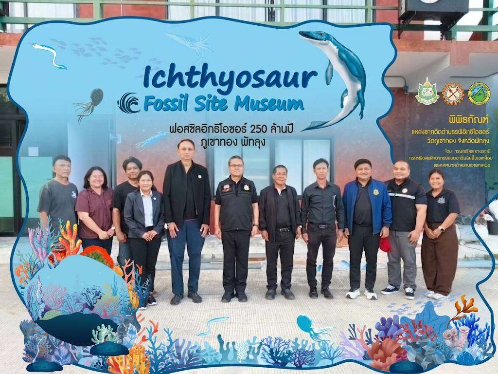 กรุงเทพฯ, วันที่ 4 เมษายน – นายสุชาติ ชมกลิ่น รัฐมนตรีว่าการกระทรวงทรัพยากรธรรมชาติและสิ่งแวดล้อม (รมว.ทส.) เดินหน้าผลักดันนโยบายอนุรักษ์แหล่งซากดึกดำบรรพ์ของประเทศไทยอย่างต่อเนื่อง โดยมอบหมายให้กรมทรัพยากรธรณีเร่งดำเนินงานให้เห็นผลเป็นรูปธรรม เพื่อยกระดับแหล่งเรียนรู้ของประเทศสู่ระดับสากล โดย เมื่อวานนี้ (3) นายยงยุทธ นาควิโรจน์ อธิบดีกรมทรัพยากรธรณี พร้อมคณะ ได้ลงพื้นที่ “แหล่งมรดกธรณีภูเขาทอง” อำเภอควนขนุน จังหวัดพัทลุง เพื่อติดตามความคืบหน้าการอนุรักษ์ และให้กำลังใจเจ้าหน้าที่ผู้ปฏิบัติงาน โดยขณะนี้อยู่ระหว่างการพัฒนาศูนย์เรียนรู้ซากดึกดำบรรพ์ภูเขาทอง เพื่อให้เป็นแหล่งศึกษาเรียนรู้สำหรับประชาชนและนักท่องเที่ยว