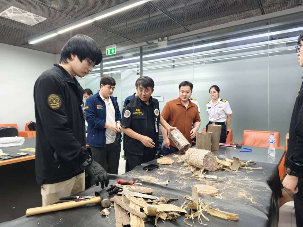 สำหรับเหตุการณ์ดังกล่าวคณะเจ้าหน้าที่ตรวจพบของกลางได้แก่ นอแรดจำนวน 5 ชิ้น (แบ่งเป็น 4 ท่อน) น้ำหนักรวมสิ่งห่อหุ้ม 12.77 กิโลกรัม โดยผู้ต้องหาใช้วิธีการนำนอแรดห่อหุ้มด้วยเปลือกไม้และหล่อทับด้วยวัสดุคล้ายเรซิ่นเพื่อตบตาเจ้าหน้าที่ ซุกซ่อนมาในกระเป๋าเดินทางทรงแข็ง จำนวน 2 ใบ จากการวิเคราะห์ภาพถ่ายเอกซเรย์กระเป๋าเดินทางบริเวณทางออกศุลกากร พบวัตถุต้องสงสัยที่มีความหนาแน่นผิดปกติ เจ้าหน้าที่จึงขอทำการตรวจค้นโดยละเอียด จนพบของกลางดังกล่าวพร้อมโทรศัพท์มือถืออีก 2 เครื่อง ซึ่งผู้ต้องหายินยอมให้ตรวจยึดเพื่อใช้เป็นหลักฐาน