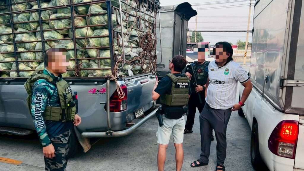กระทั่งวันที่ 4 เมษายน 2569 เวลา 18.20 น. เจ้าหน้าที่ติดตามรถยนต์กระบะคอกต้องสงสัย ซึ่งบรรทุกผักสดเต็มคันรถมาจากแนวชายแดน ก่อนเข้าจับกุมได้ภายในปั๊มน้ำมันแห่งหนึ่งใน อ.บางปะอิน จ.พระนครศรีอยุธยา