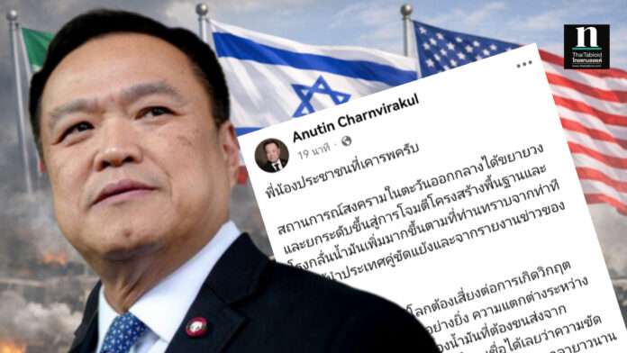 “อนุทิน” โพสต์ถึงประชาชน ชี้สถานการณ์สงครามตะวันออกกลางกระทบโครงสร้างพลังงานโลก เสี่ยงน้ำมันขาดแคลน–ราคาพุ่ง ย้ำไทยแม้มีสำรองสูงแต่ยังเปราะบาง สั่งหน่วยงานรัฐเข้มมาตรการประหยัดพลังงาน พร้อมขอเอกชน–ประชาชนร่วม WFH ใช้ขนส่งสาธารณะ รับมือวิกฤตร่วมกัน