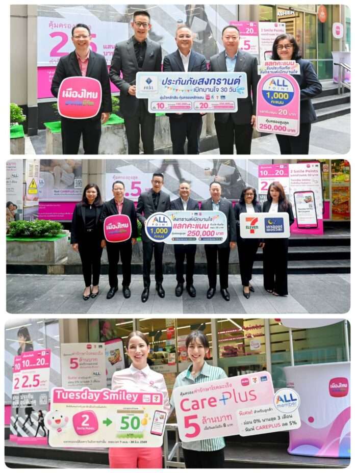ทั้งนี้ เมืองไทยประกันชีวิต ซีพี ออลล์ และเคาน์เตอร์เซอร์วิส ยังได้จัดแคมเปญพิเศษสำหรับสมาชิก All Member ด้วยการนำเสนอแบบประกันออนไลน์ โครงการเมืองไทย Care Plus โรคร้ายแรง ให้ความคุ้มครองค่ารักษาโรคมะเร็ง ครอบคลุมทั้งผู้ป่วยในและผู้ป่วยนอก วงเงินครอบคลุมค่าปรึกษาทางจิตเวช 5 ล้านบาทต่อปีกรมธรรม์ ซื้อได้อายุ 20 – 70 ปี ดูแลถึงอายุ 99 ปี โดยสมาชิก All Member จะรับส่วนลด ค่าเบี้ยประกันปีแรกทันที 5% เมื่อพิมพ์รหัสส่วนลดตามที่กำหนด และสามารถผ่อนชำระค่าเบี้ยประกัน 0% นานสูงสุด 3 เดือน (เมื่อมียอดเบี้ยประกันรายปีขั้นต่ำ 6,000 บาท) ระยะเวลาแคมเปญตั้งแต่วันที่ 31 มีนาคม 2569 – 30 เมษายน 2569