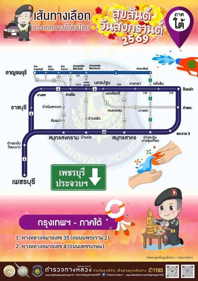 “ตำรวจทางหลวงพร้อมดูแลและอำนวยความสะดวกให้แก่ประชาชนอย่างเต็มที่ตลอดช่วงเทศกาลสงกรานต์ โดยสามารถสอบถามข้อมูลเส้นทางและขอความช่วยเหลือ โทร. 1193 ได้ตลอด 24 ชั่วโมง ติดตามข่าวสารจราจรได้ทางเพจ ตำรวจทางหลวง” พล.ต.ต.พรศักดิ์ กล่าว