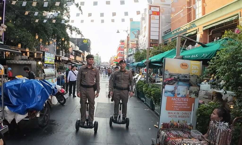 ผู้กำกับ สน.ชนะสงคราม นำกำลังสำรวจพื้นที่ถนนข้าวสารและโดยรอบ วางมาตรการดูแลความปลอดภัยช่วงเทศกาลสงกรานต์ 13–15 เม.ย. พร้อมนำยานพาหนะไฟฟ้า SEGWAY เพิ่มความคล่องตัวในการออกตรวจ