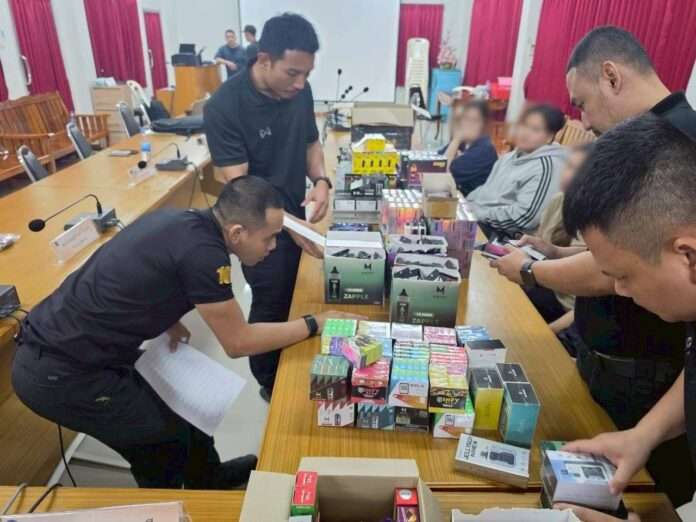 เมื่อวันที่ 8 เม.ย. พล.ต.ต.พัฒนศักดิ์ บุปผาสุวรรณ ผบก.ป.สั่งการ พ.ต.อ.เนติวิทย์ ธนาสิทธิ์นิติกุล ผกก.2 บก.ป.และ พ.ต.ต.รชา มากมณี สว.กก.2 บก.ป. นำกำลังจับกุม นายพงศกรฯ อายุ 31 ปี, น.ส.จริณพรฯ อายุ 25 ปี,น.ส.ณัฎฐาฯ อายุ 27 ปี และ น.ส.วรรณิศาฯ อายุ 26 ปี ฐาน “ช่วยซ่อนเร้น ช่วยจําหน่าย รับไว้โดยประการใดซึ่งของอันพึงรู้ว่าเป็นของที่มิได้ผ่านพิธีศุลกากร และ ขายบุหรี่ไฟฟ้าอันเป็นการฝ่าฝืนคำสั่งคณะกรรมการคุ้มครองผู้บริโภคฯ ” ได้ภายในบ้านเช่าหลังหนึ่ง ในพื้นที่ ม.3 ต.ดอนหัวฬ่อ อ.เมือง จ.ชลบุรี พร้อมของกลางบุหรี่ไฟฟ้า ,น้ำยาบุหรี่ไฟฟ้า และ แบตเตอรี่สำหรับบุหรี่ไฟฟ้า รวมกว่า 900 ชิ้น มูลค่ากว่า 250,000 บาท