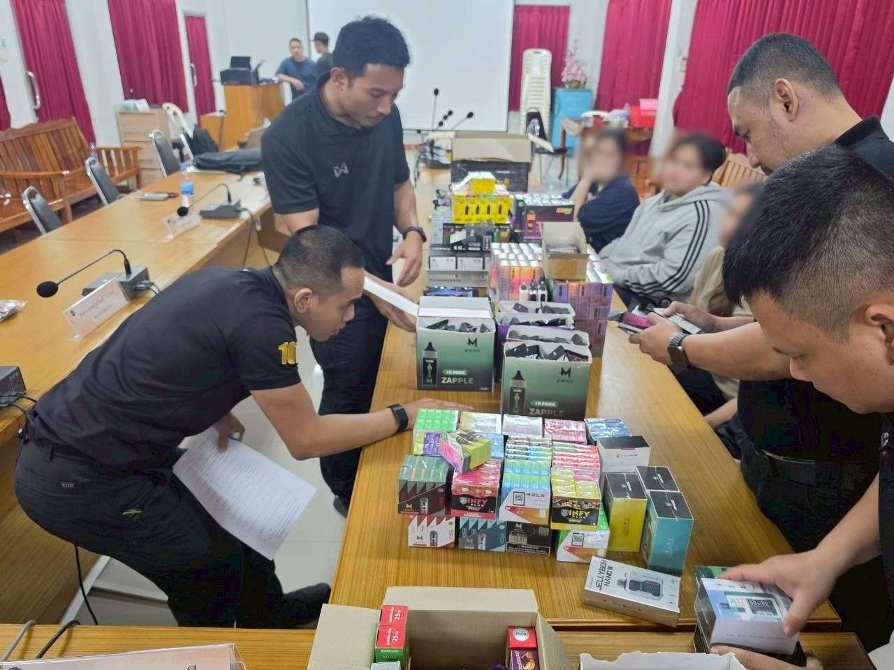 สืบเนื่องจาก เจ้าหน้าที่ตำรวจ กก.2 บก.ป. สืบทราบว่า กลุ่มผู้ต้องหาได้เช่าบ้านในพื้นที่ จ.ชลบุรี เพื่อลักลอบจำหน่ายบุหรี่ไฟฟ้าออนไลน์ โดยมีกลุ่มลูกค้าเป็นเด็กเยาวชน นักศึกษาและกลุ่มวัยรุ่นทั่วประเทศ จึงได้รวบรวมพยานหลักฐานขออนุมัติศาลจังหวัดชลบุรี ก่อนเข้าทำการตรวจค้นจับกุมผู้ต้องหาทั้ง 4 รายได้พร้อมของกลางดังกล่าว
