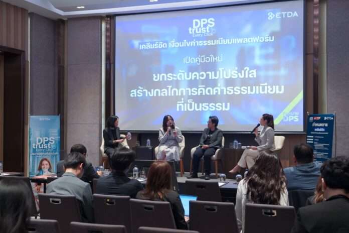 กรุงเทพฯ – สำนักงานพัฒนาธุรกรรมทางอิเล็กทรอนิกส์ สพธอ. หรือ ETDA จัดกิจกรรมเสวนา “DPS TRUST EVERY CLICK: เคลียร์ชัดเงื่อนไขค่าธรรมเนียมแพลตฟอร์ม” ชวนหน่วยงานกำกับดูแล แพลตฟอร์ม ผู้ประกอบการ และผู้บริโภค สะท้อนภาพรวมผลกระทบค่าธรรมเนียมแพลตฟอร์มดิจิทัล พร้อมเปิดคู่มือ ‘การดูแลเพื่อให้เกิดความโปร่งใสและเป็นธรรมในการคิดค่าธรรมเนียมของบริการแพลตฟอร์มดิจิทัล’ แนวทางใหม่ยกระดับความโปร่งใสและความเป็นธรรมในระบบนิเวศดิจิทัลที่ส่งผลต่อทั้งผู้ประกอบการ ผู้บริโภค และผู้ให้บริการแพลตฟอร์ม