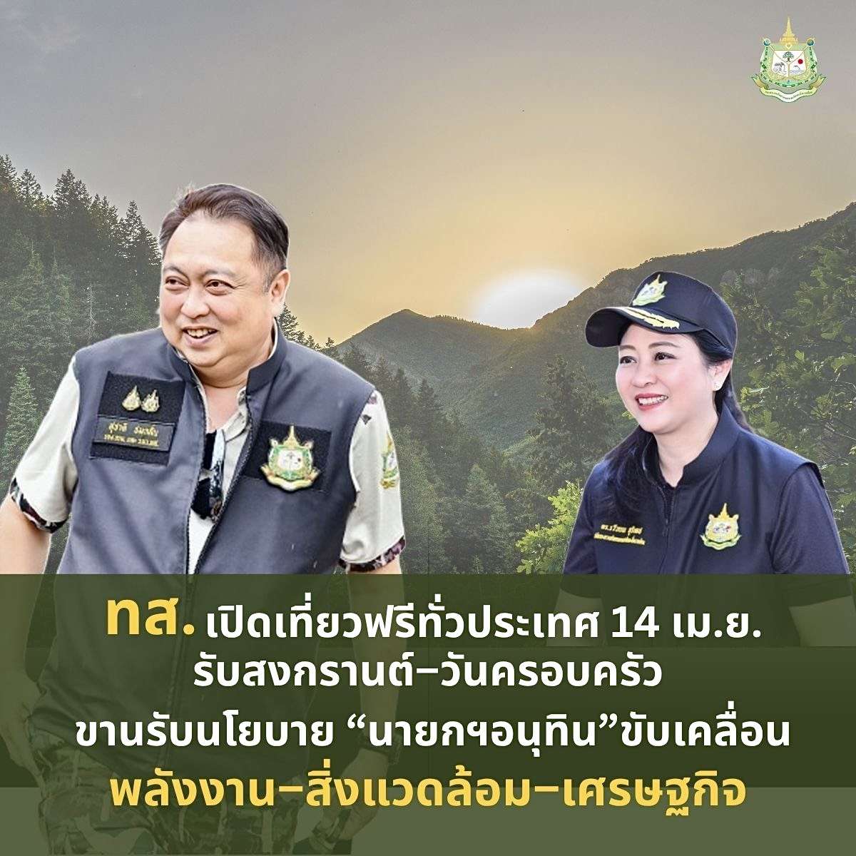 ทส. เผยข่าวดี เปิดให้คนไทยเที่ยวฟรีทั่วประเทศ 14 เม.ย. รับสงกรานต์–วันครอบครัว