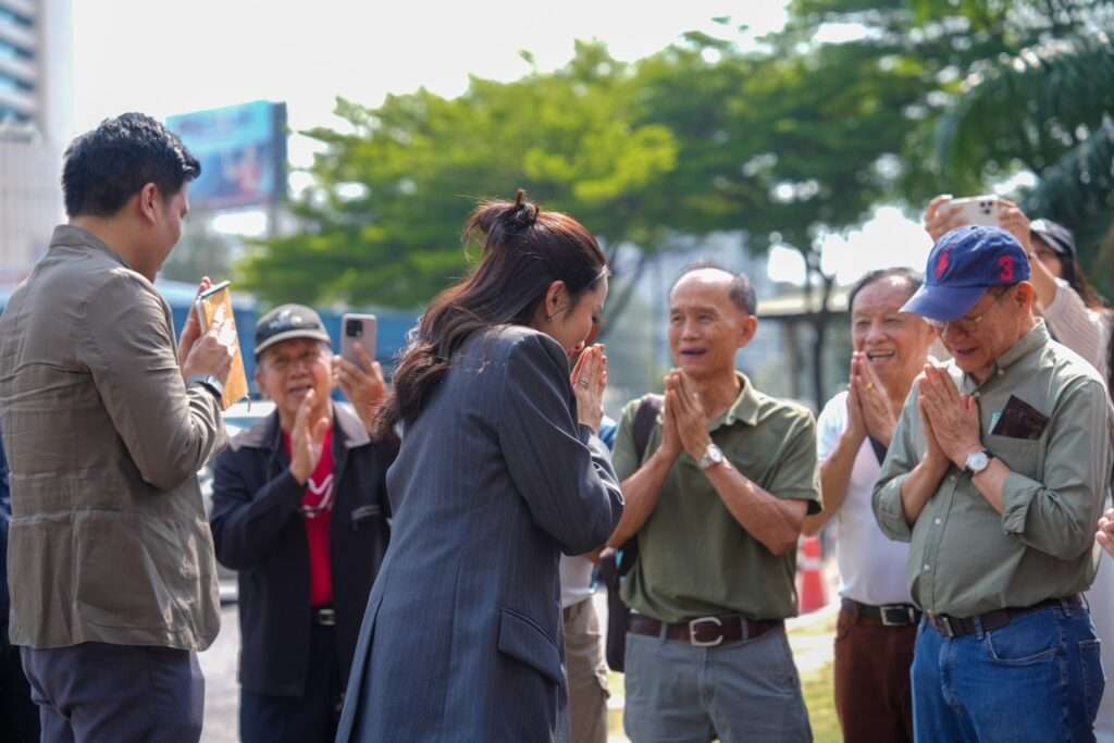 ต่อมา เวลา 10.30 น. น.ส.แพทองธาร ชินวัตร อดีตนายกรัฐมนตรี พร้อมด้วย นายปิฎก สุขสวัสดิ์ คู่สมรส เดินทางออกจากเรือนจำภายหลังการเยี่ยมนายทักษิณเสร็จ ซึ่งได้มีการทักทายกลุ่มเพื่อนร่วมรุ่นสมัยโรงเรียนมงฟอร์ตวิทยาลัย จ.เชียงใหม่ รหัส MC 08 ที่เดินทางมาให้กำลังใจ