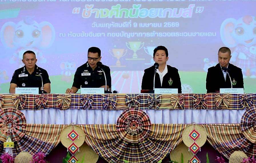 วันที่ 9 เมษายน 2569 เวลา 10.00 น. ณ ห้องชัยจินดา กองบัญชาการตำรวจตระเวนชายแดน กรุงเทพมหานคร นายมงคล วิมลรัตน์ อธิบดีกรมพลศึกษา พร้อมด้วย พลตำรวจตรี กัญชล อินทราราม รองผู้บัญชาการตำรวจตระเวนชายแดน นายสุธน วิชัยรัตน์ รองอธิบดีกรมพลศึกษา และพลตำรวจตรี วุฒิพงษ์ เย็นจิตร ผู้บังคับการตำรวจตระเวนชายแดนภาค 2 ร่วมแถลงข่าวการจัดการแข่งขันกีฬานักเรียนโรงเรียนตำรวจตระเวนชายแดน ครั้งที่ 12 ประจำปี 2569 “ช้างศึกน้อยเกมส์ ” เปิดศึกแห่งเกมส์กีฬา สร้างความรักความสามัคคี มีน้ำใจนักกีฬา ร่วมแลกเปลี่ยนวัฒนธรรม และเสริมประสบการณ์ใหม่ให้แก่นักเรียนโรงเรียนตำรวจตระเวนชายแดนทั่วประเทศ ภายใต้คำขวัญ “ใต้ฟ้าเดียวกัน สุขสันต์เริงร่า เกมส์กีฬาแห่งความสามัคคีสี่ภาค”