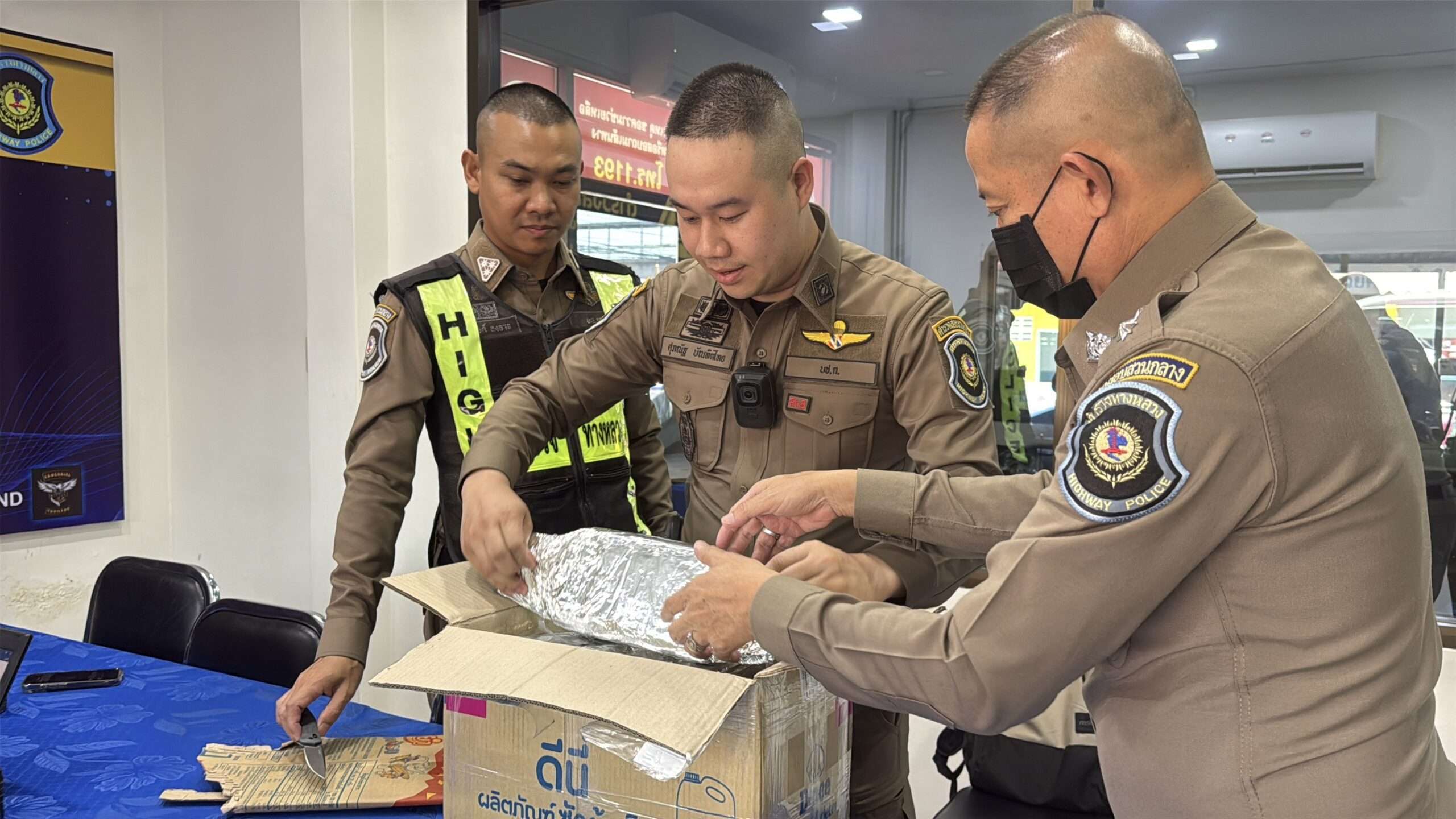 ต่อมาเจ้าหน้าที่ตรวจพบพัสดุต้องสงสัยถูกส่งจาก จ.เชียงราย ระบุชื่อผู้ส่ง “อาเคอะ” และปลายทาง อ.นาบอน จ.นครศรีธรรมราช ระบุชื่อผู้รับ “สมชาย” ซึ่งเชื่อว่าเป็นพัสดุยาเสพติดของเครือข่ายดังกล่าว จึงเฝ้าติดตามความเคลื่อนไหวของพัสดุอย่างใกล้ชิด กระทั่งพบว่าพัสดุดังกล่าวถูกทำรายการผ่านระบบออนไลน์แจ้งว่า “ส่งผิด” และขอให้ตีกลับพัสดุไปยังต้นทางที่ จ.เชียงราย เจ้าหน้าที่ กก.7 บก.ทล. จึงประสานข้อมูลกับคลังสินค้าของบริษัทขนส่ง จนทราบว่าพัสดุต้องสงสัยกำลังถูกขนส่งกลับโดยรถบรรทุก ทะเบียนจังหวัดสุราษฎร์ธานี