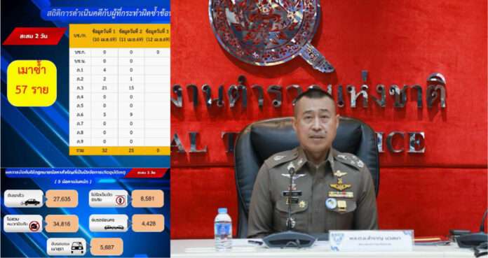 ทั้งนี้ ในช่วง 2 วันของการควบคุมเข้มข้น วันที่ 10-11 เมษายน 2569 ที่ผ่านมา มีการบังคับใช้กฎหมายข้อหาสำคัญที่เป็นปัจจัยการเกิดอุบัติเหตุ โดยเฉพาะข้อหาเน้นหนัก 5 ข้อหา พบว่าข้อหาที่มีผู้กระทำผิดสูงสุดคือ ไม่สวมหมวกนิรภัย 34,816 ครั้ง รองลงมาคือ ขับรถเร็วเกิดกฎหมายกำหนด 27,635 ครั้ง, ไม่คาดเข็มขัดนิรภัย 8,581 ครั้ง, ขับรถขณะเมาสุรา 5,687 ครั้ง ซึ่งตรวจพบเป็นผู้กระทำความผิดซ้ำ จำนวน 57 ราย และขับรถย้อนศร 4,428 ครั้ง สะท้อนให้เห็นถึงความจำเป็นในการร่วมกันลดพฤติกรรมเสี่ยงและเพิ่มความปลอดภัยบนท้องถนนอย่างต่อเนื่องในช่วงเทศกาล