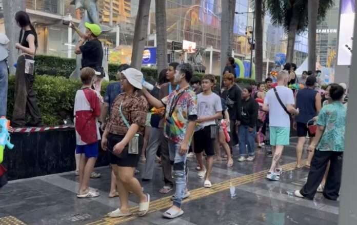 วันที่ 12 เมษายน 2569 บรรยากาศเทศกาล สงกรานต์ ที่บริเวณเซ็นทรัลเวิลด์ เป็นไปอย่างคึกคักตั้งแต่ช่วงบ่าย ประชาชนและนักท่องเที่ยวทั้งชาวไทยและต่างชาติหลั่งไหลเข้าร่วมเล่นน้ำจำนวนมาก ท่ามกลางอากาศร้อนจัดของกรุงเทพฯ