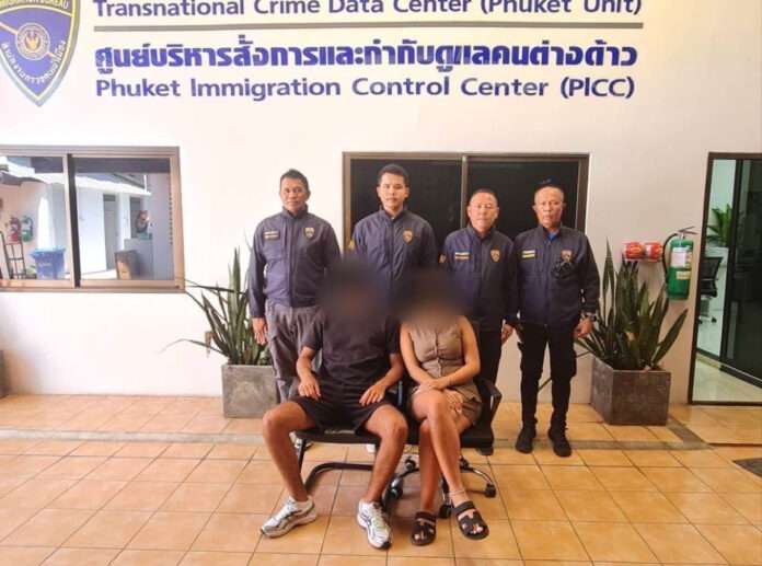 สภ.กมลา จึงประสาน ตม.จว.ภูเก็ต ขอให้พิจารณากรณีเป็นคนต่างด้าว ซึ่งได้รับอนุญาตให้อยู่ในราชอาณาจักรเป็นการชั่วคราว มีพฤติการณ์ที่สมควรเพิกถอนการอนุญาตให้อยู่ในราชอาณาจักร และได้เสนออนุมัติเพิกถอนการอยู่ในราชอาณาจักร ต่อมา ผบก.ตม.6 ได้อนุมัติเพิกถอนฯ พร้อมทั้งแจ้งให้บุคคลต่างด้าวทั้งสองรายดังกล่าวทราบถึงการเพิกถอนการอนุญาตให้อยู่ในราชอาณาจักร (วีซ่า) แล้วจึงควบคุมตัวไว้ เพื่อดำเนินการตามกฎหมายต่อไป