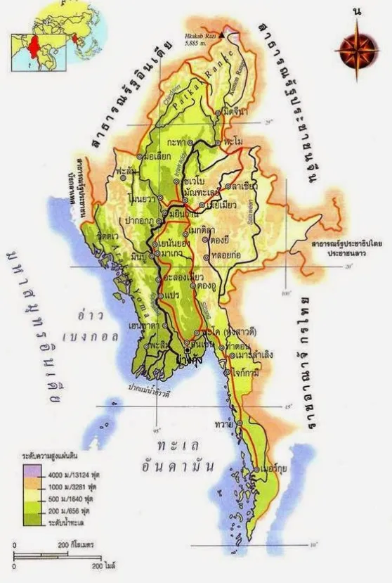 พื้นที่ชายแดนของเมียนมา ซึ่งมีความยาวรวม 6,697 กิโลเมตร ครอบคลุมประเทศเพื่อนบ้าน 5 ประเทศ ได้แก่ อินเดีย (1,643 กิโลเมตร) ไทย (2,416 กิโลเมตร) จีน (2,129 กิโลเมตร) ลาว (238 กิโลเมตร) และบังกลาเทศ (271 กิโลเมตร) เป็นพื้นที่สำคัญต่อทหารเมียนมา เพราะทหารเมียนมาได้รักษาความสัมพันธ์ในลักษณะ “คงสภาพเดิม (status quo)” โดยเฉพาะกับไทย จีน และอินเดีย ซึ่งใช้แนวทางที่ไม่เปิดเผยมากนักเพื่อคงไว้ซึ่งความร่วมมือระยะยาว ส่วนด้านบังกลาเทศ เมียนมายังคงเผชิญกับวิกฤตโรฮิงญา แต่ทั้งสองฝ่ายตระหนักถึงความจำเป็นเร่งด่วนในการหาทางออก ขณะที่ชายแดนเมียนมา–ลาวยังคงสงบมานานหลายทศวรรษ